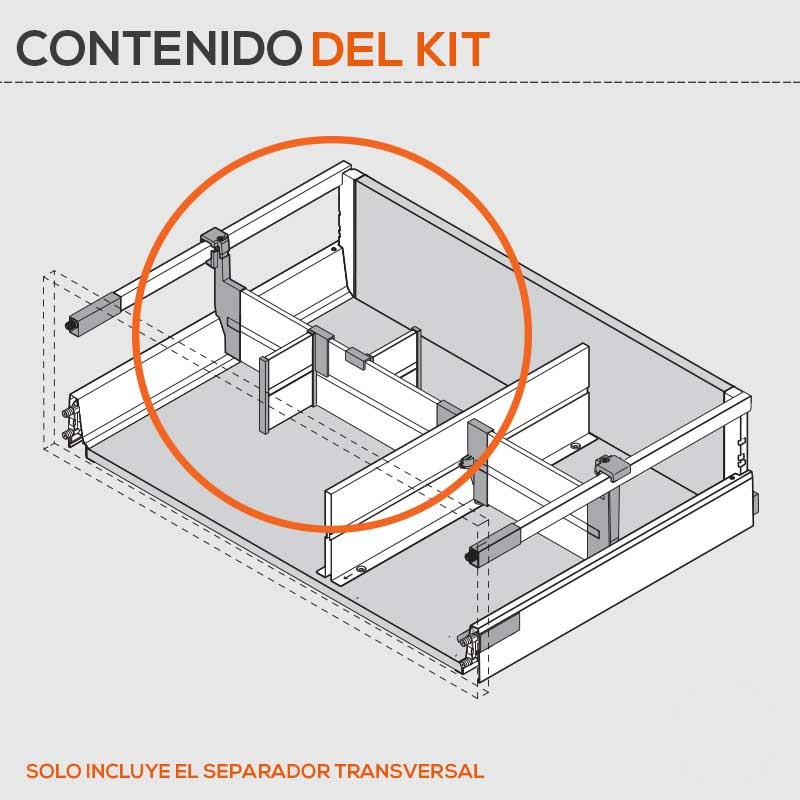 Développez Séparateur transversal en acier avec bord de coupe hébergement à l'hôtel de la galerie et de la cloison séparateur de tiroirs, les blocs-tiroirs de cuisine Blum Tandembox Antaro D.