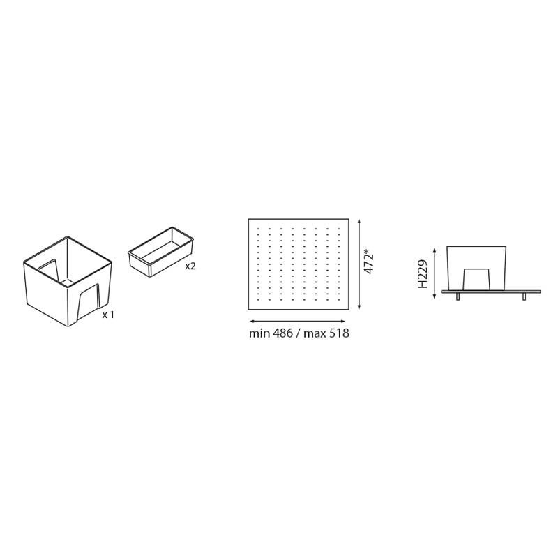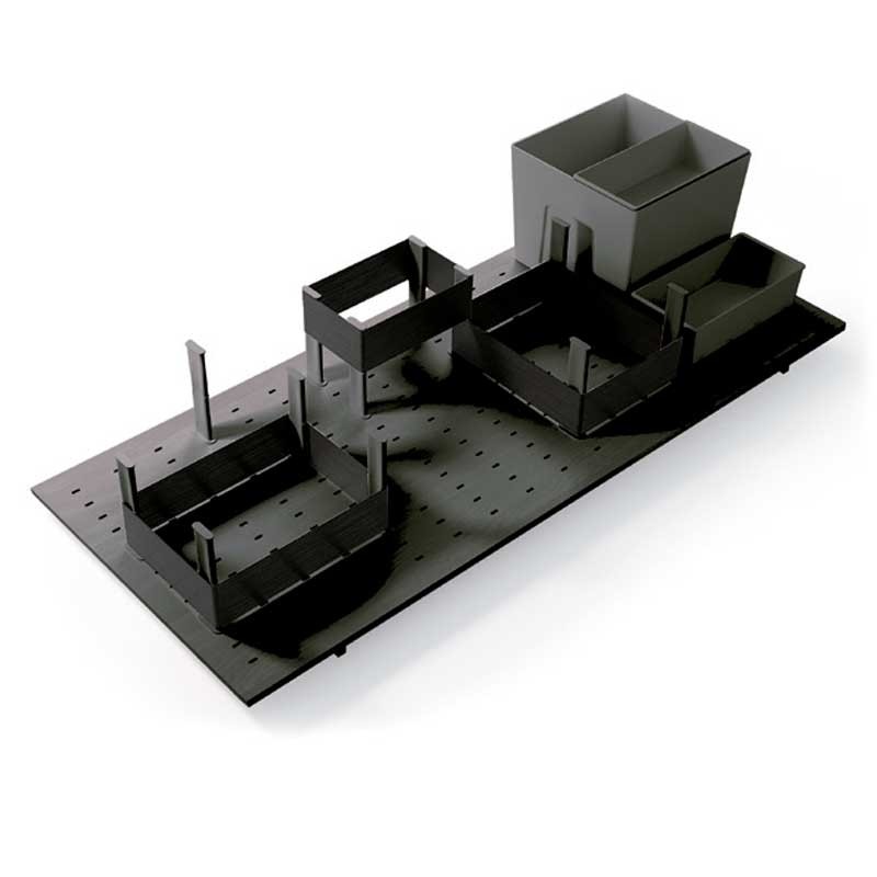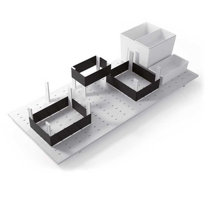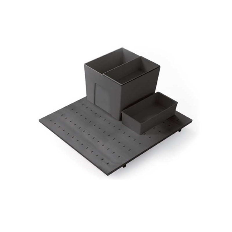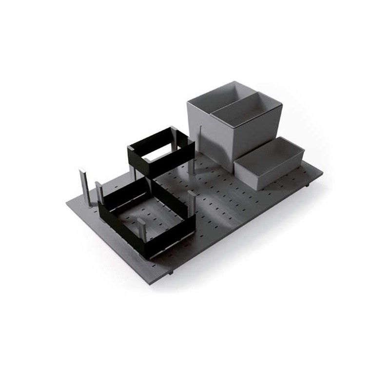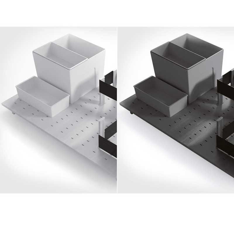 Les boîtes de venir avec un crochet pour attacher à la base perforée et assurer un maximum de stabilité dans l'ouverture et la fermeture du tiroir. La petite boîte est conçue pour s'adapter à la plus grande.
