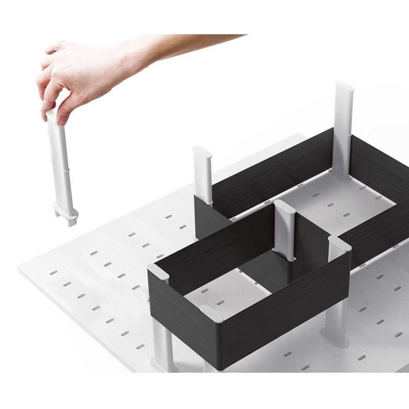 Les entretoises et des bandes élastiques peuvent être placés librement pour obtenir le plus de personnalisation de l'espace.