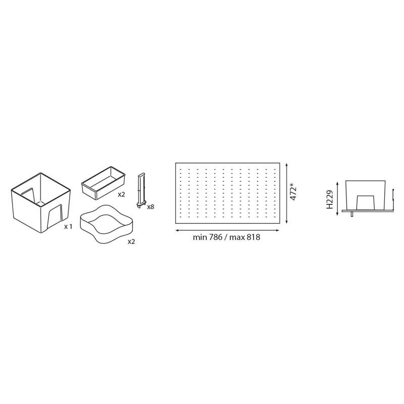 Développez Kit de modèle de stockage Premiere Plus les tiroirs les blocs-tiroirs dans la cuisine. Disponible en blanc ou anthracite, et pour les différentes mesures de la pièce de mobilier.