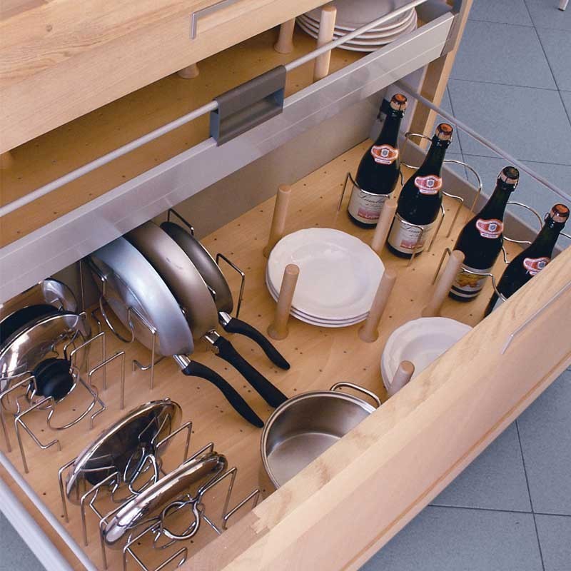Développez Base perforée en bois modèle Open Space pour bloc-tiroir de cuisine. Disponible en 3 couleurs au choix et pour différentes tailles de tiroirs. Seule base sans accessoires.