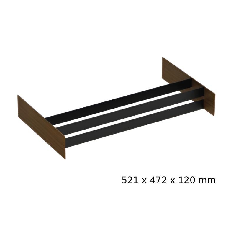 Développez Cocotte avec divisions horizontales en aluminium laqué piombo (anthracite) et côtés stratifiés compacts en finition noyer.