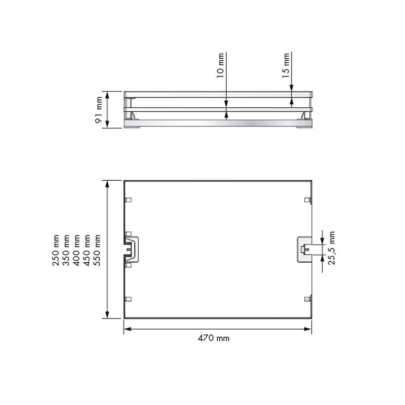 En fonction de la largeur du meuble où sont installés les paniers avec leur cadre amovible correspondant, ils auront les dimensions suivantes (largeur x hauteur x profondeur):