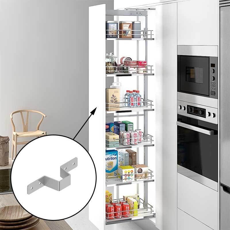 Développez Cadre de colonne en acier finition argent pour armoire colonne positionné loin de la cuisine. Ce produit est disponible en différentes tailles.