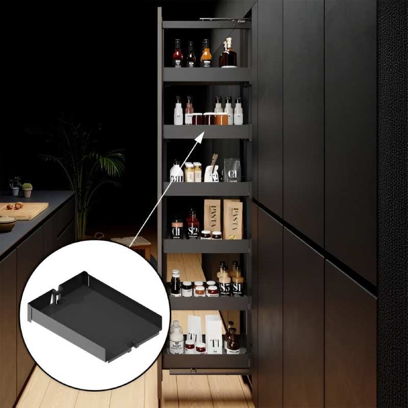 Développez Panier en acier anthracite avec base antidérapante, conçu pour la colonne extractible Nova Flat du système Menage Confort.