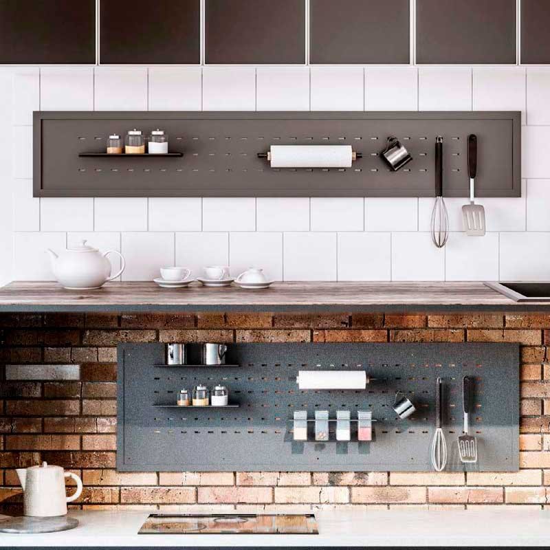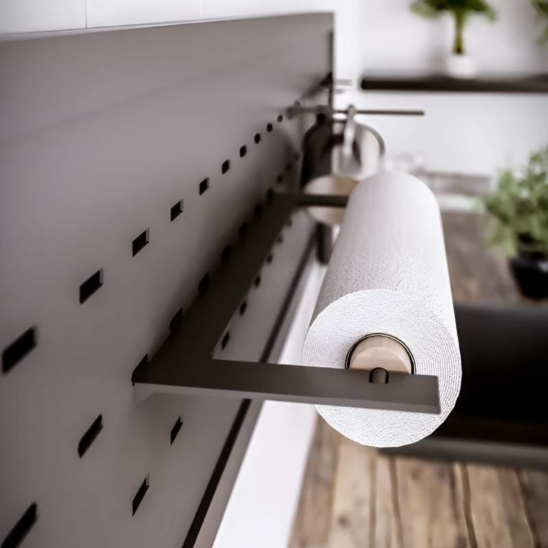Le porte-rouleaux de cuisine – Linero Back est un accessoire modulaire conçu pour le système Linero Back, idéal pour garder le papier essuie-tout toujours bien rangé et accessible. Fabriqué en métal laqué, il s’installe facilement sur la surface perforée, alliant fonctionnalité et design.
