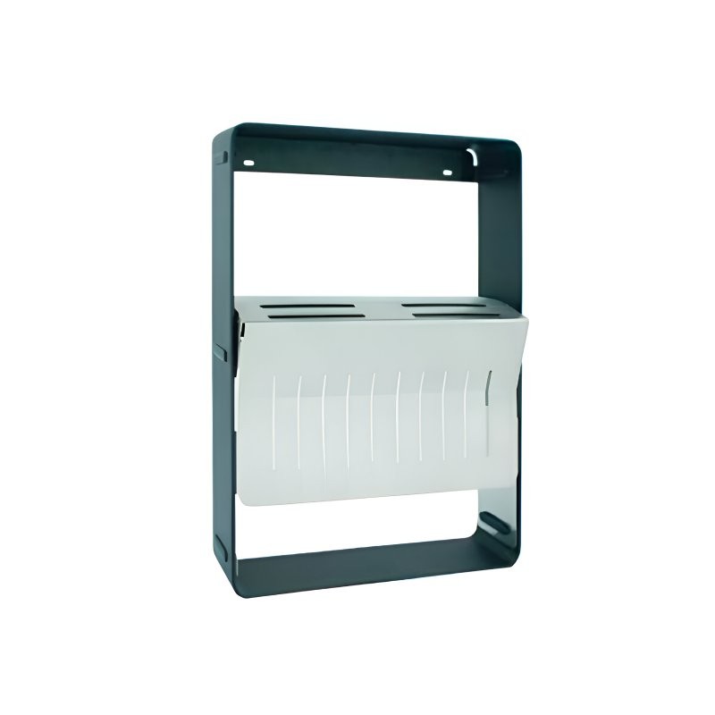 Développez Colonnes Linero, un cadre polyvalent en acier avec des finitions gris foncé (RAL7021). Le reste des pièces est en acier brossé.