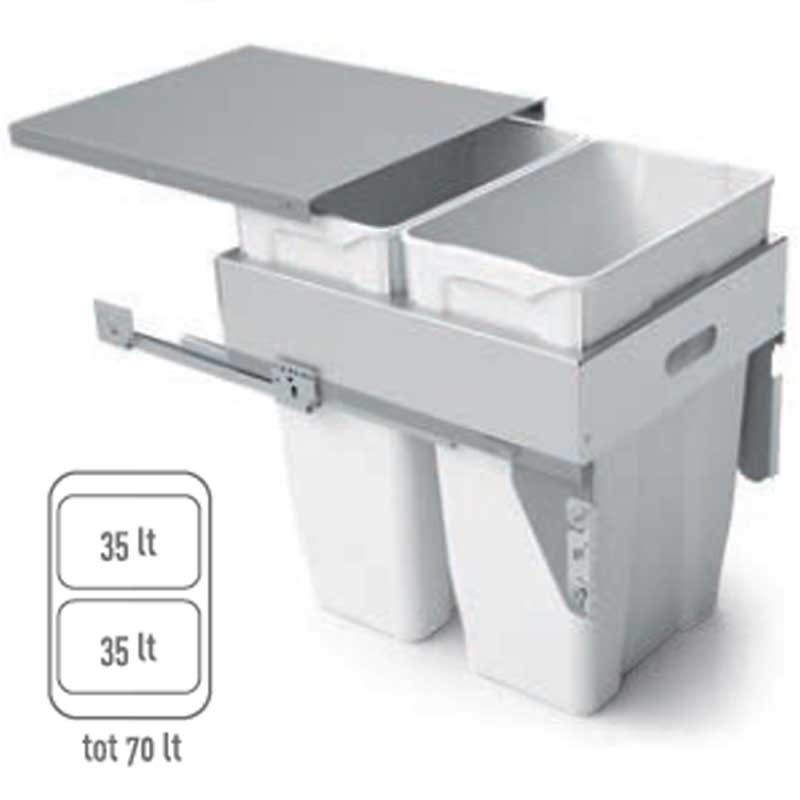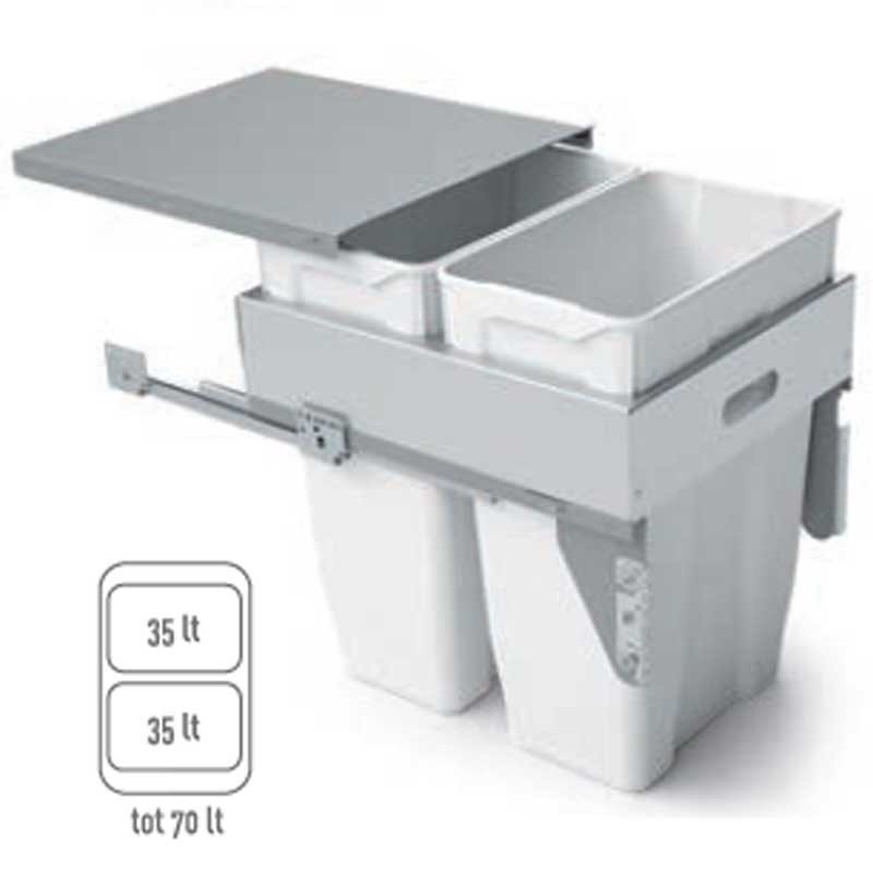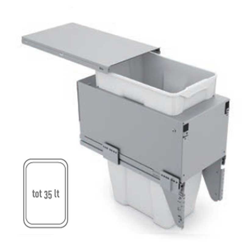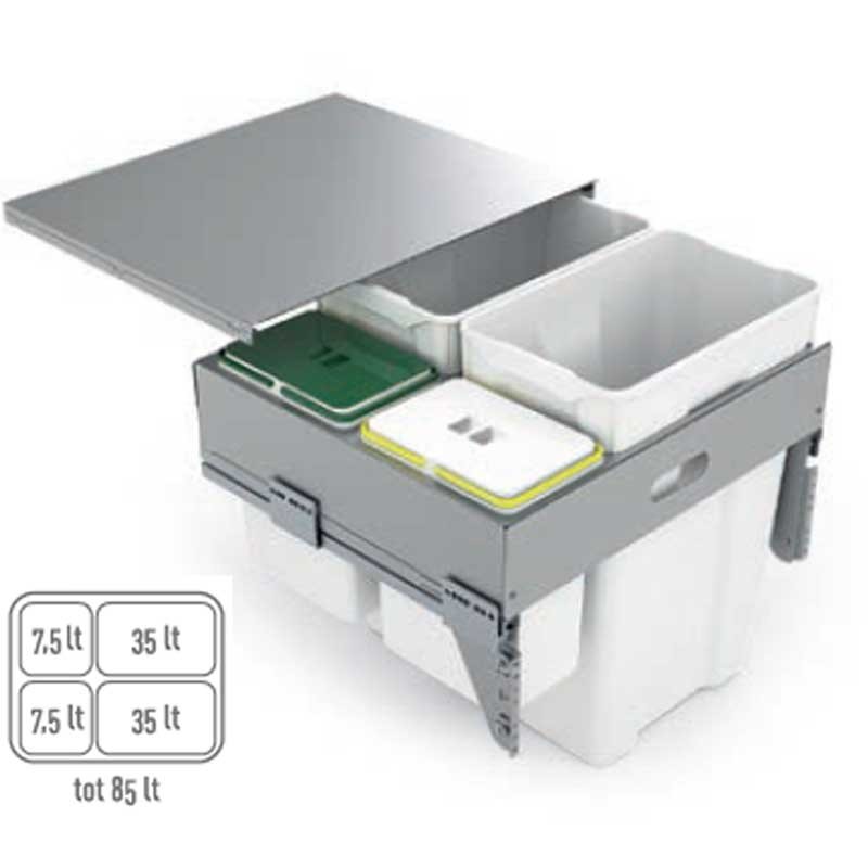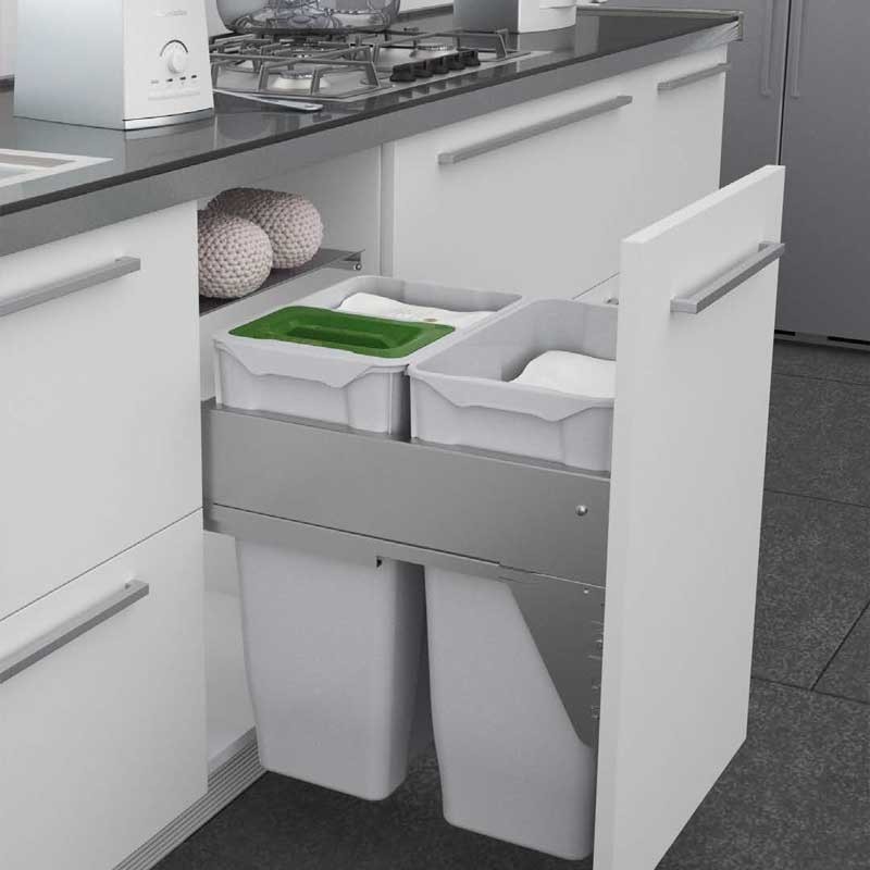 Poubelle Quadrifoglio de couleur grise avec guides d'extraction totale de 500 mm et fermeture amortie de grande capacité.