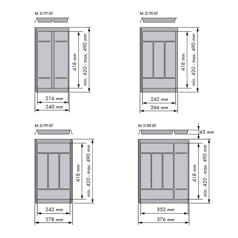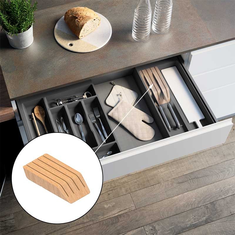 En fonction de la largeur de notre tiroir, nous serons en mesure d'installer 1 seul porte-couverts ou faire différentes combinaisons en ajoutant 2 ou plus porte-couverts. Il est important d'avoir à l'esprit la largeur à l'intérieur de notre tiroir afin de savoir comment de nombreux modules, nous pouvons installer et qui est la mesure qui convient le mieux.