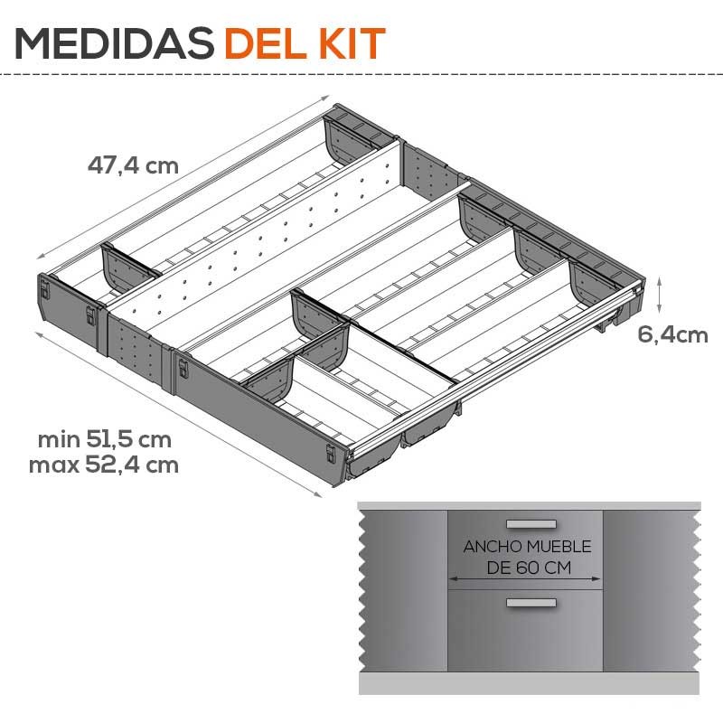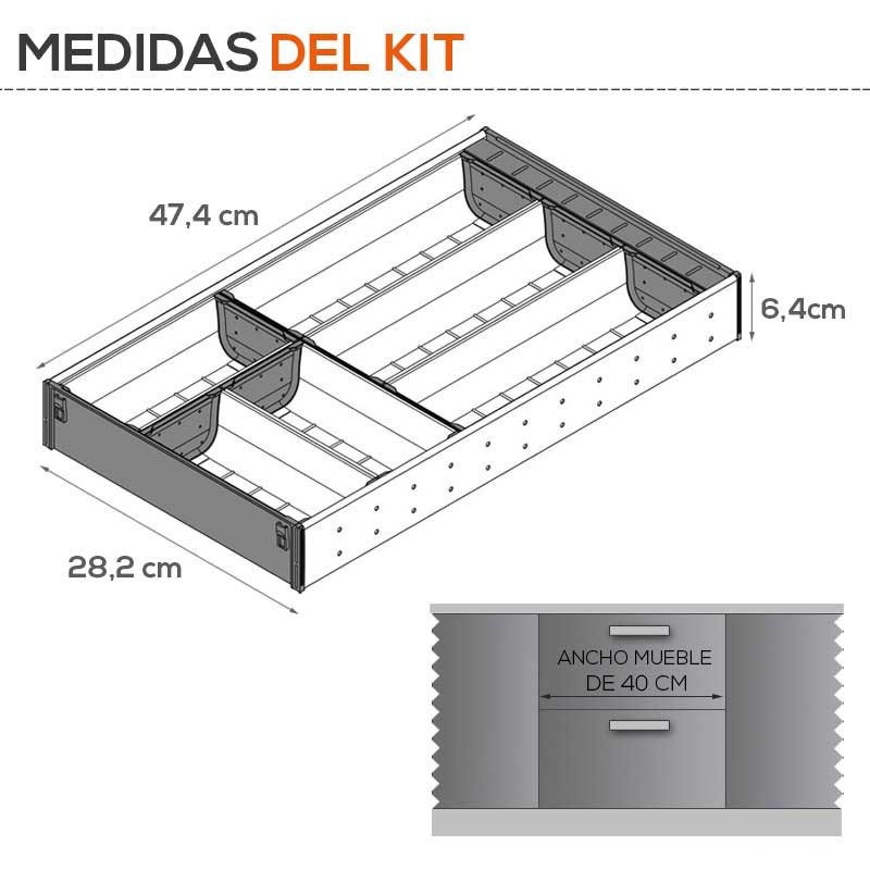 En option, vous pouvez demander d'autres mesures de fonds ou de varier les subdivisions de interne pour être en mesure de compatibilizarlos avec d'autres accessoires de la gamme ORGA-LINE.