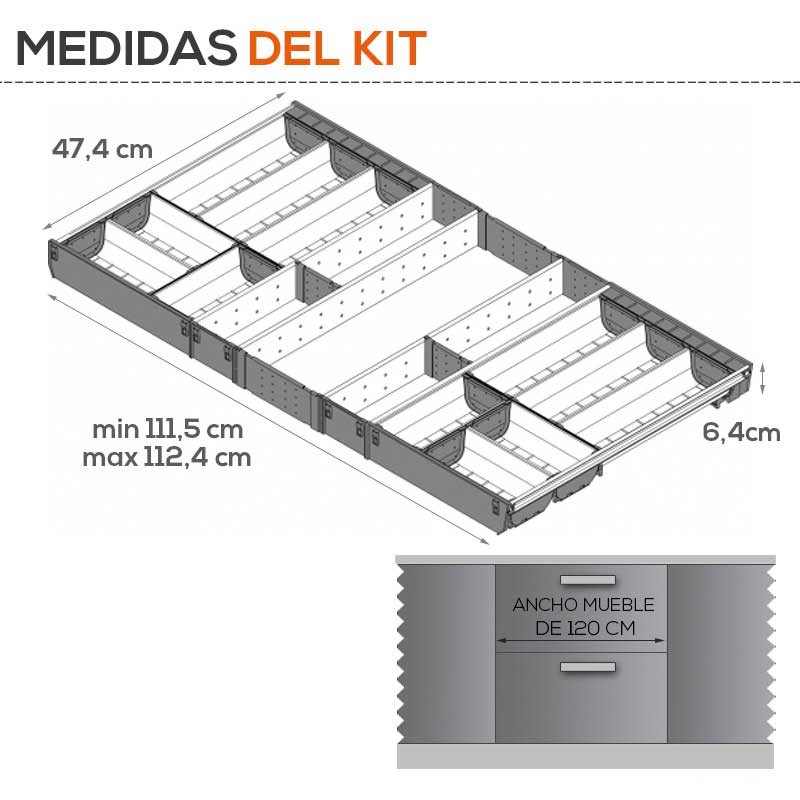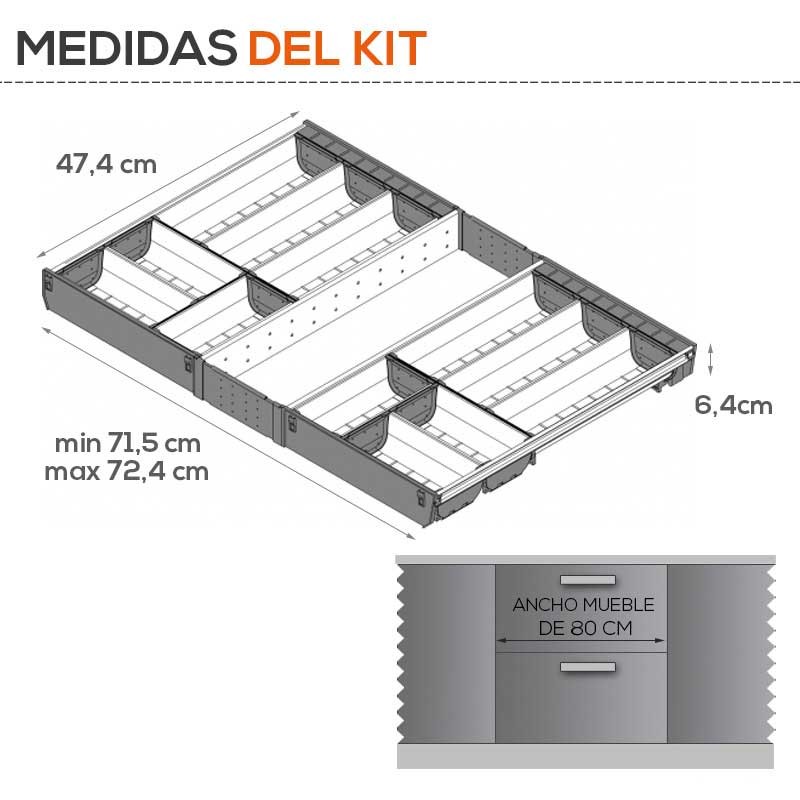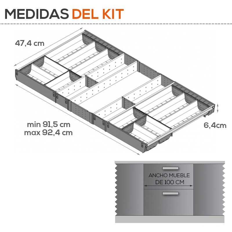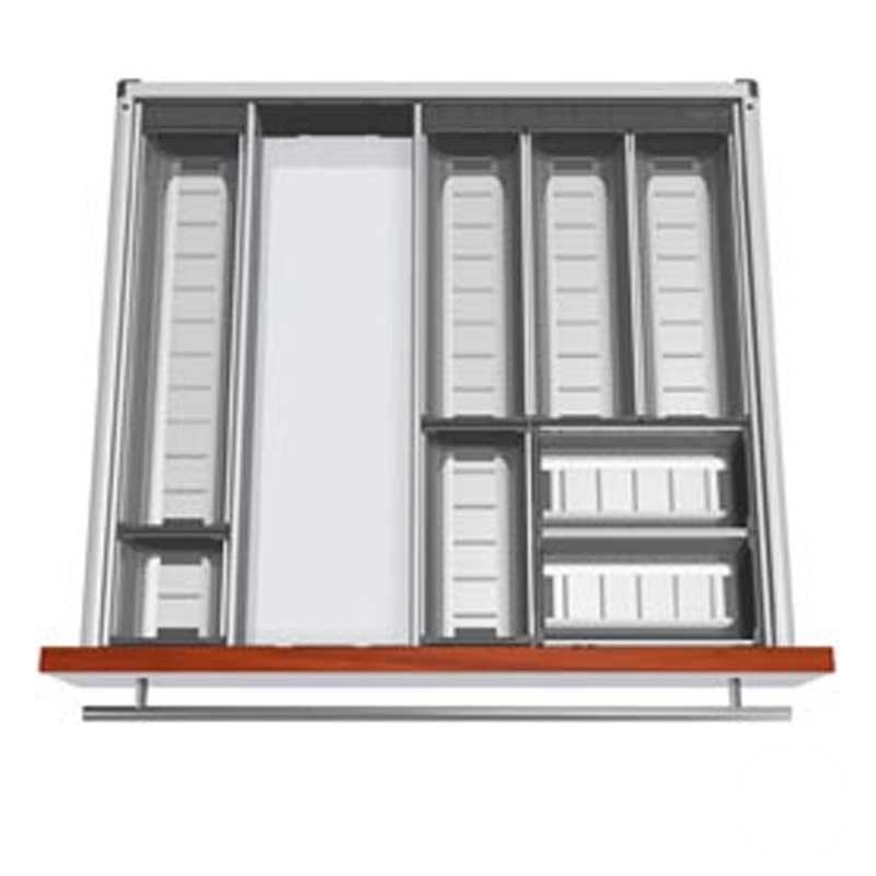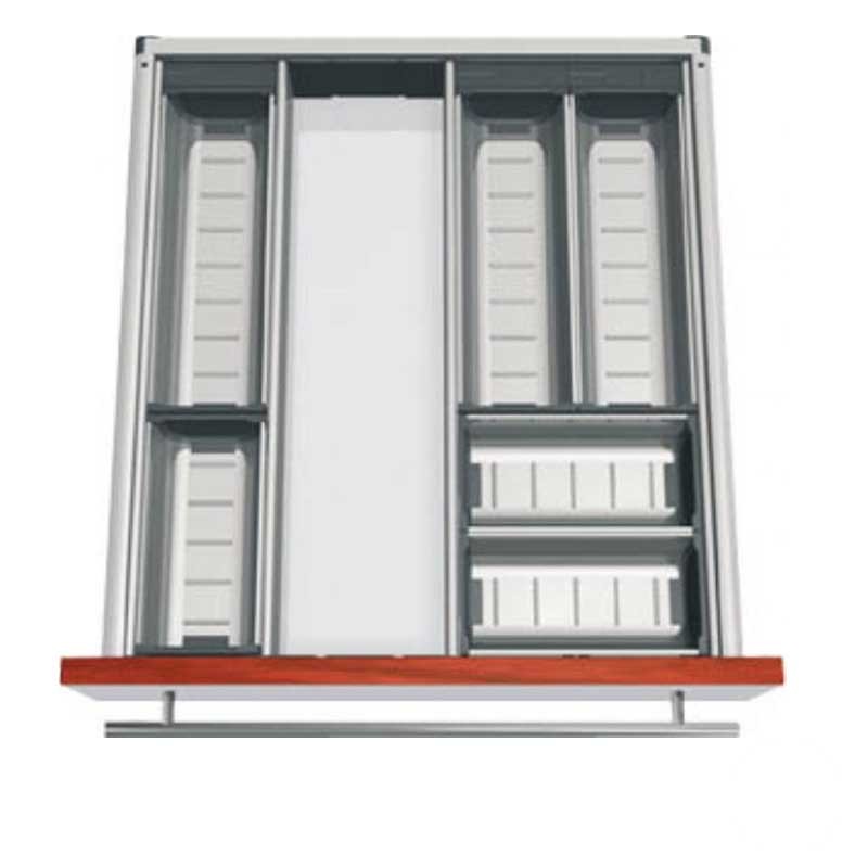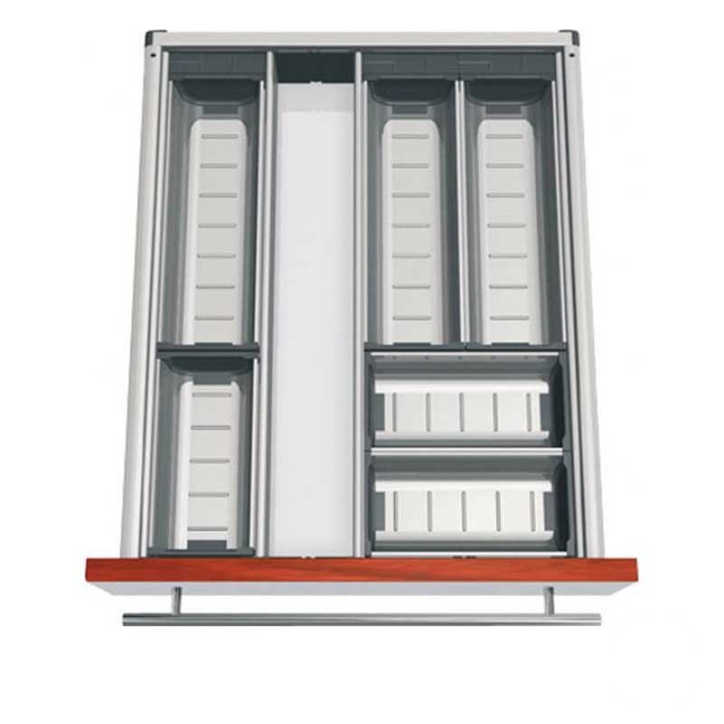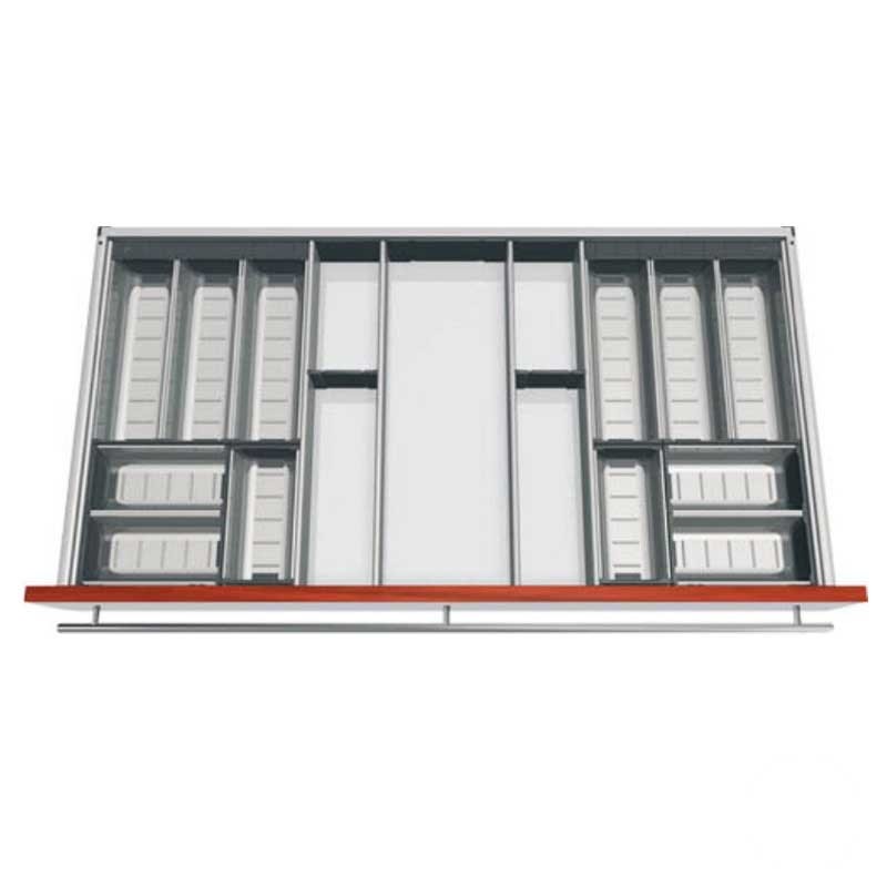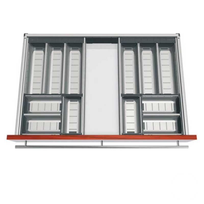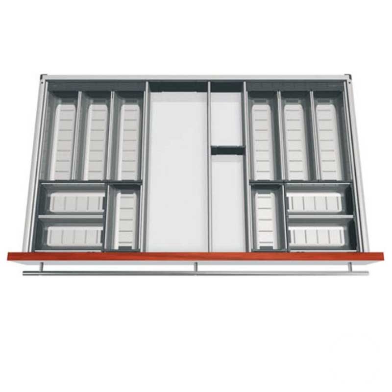 Développez Cubertero modulaire de cuisine en acier inoxydable de tiroirs Blum Tandembox. Comprend des meubles diviseurs pour dimensinar compartiments.
