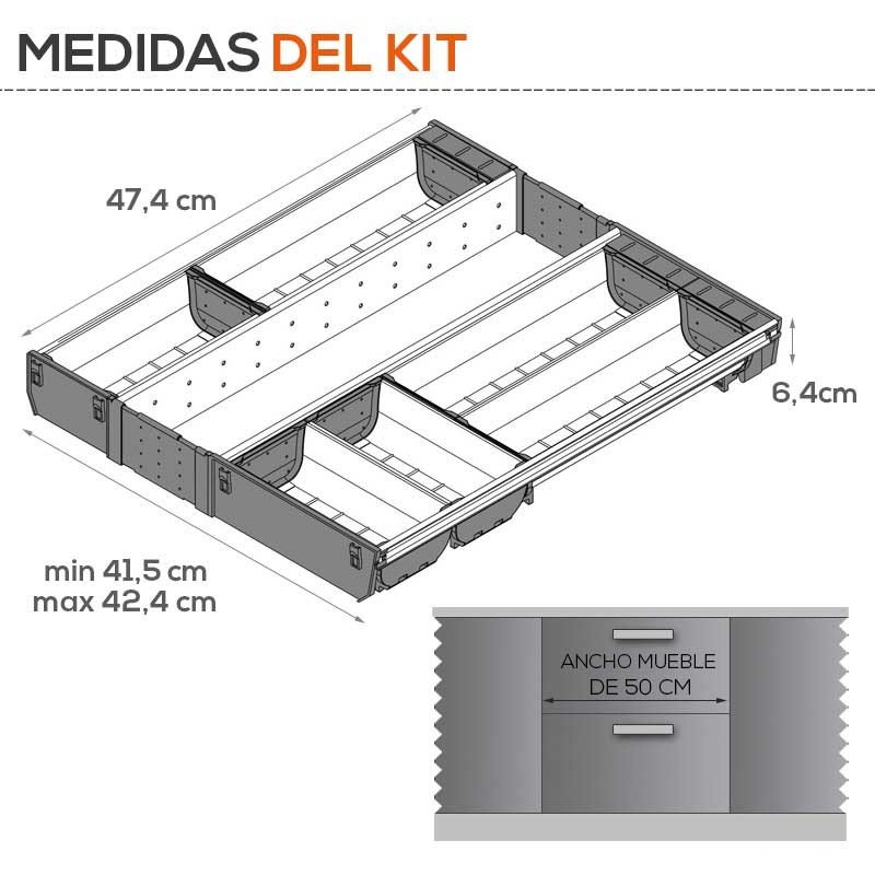 Ces cuberteros sont disponibles pour les différentes largeurs de façade de meuble, et ont un fond standard de 50 cm