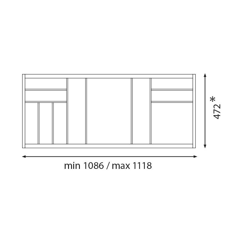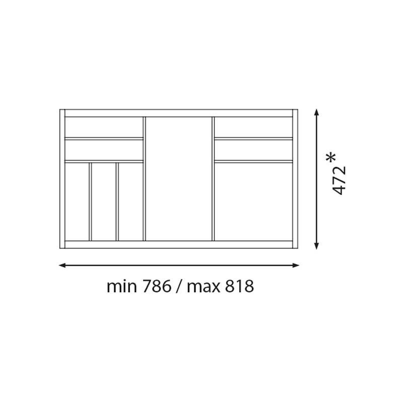 Les dimensions totales du porte-couverts (largeur x profondeur x hauteur) en fonction de la largeur du meuble avec lequel il est compatible sont les suivantes: