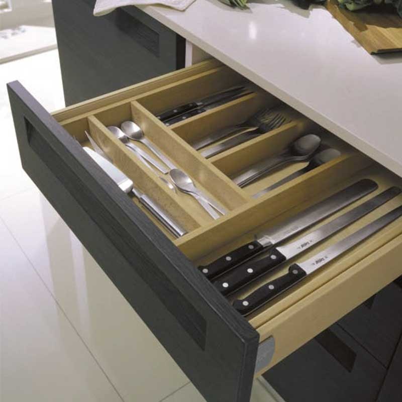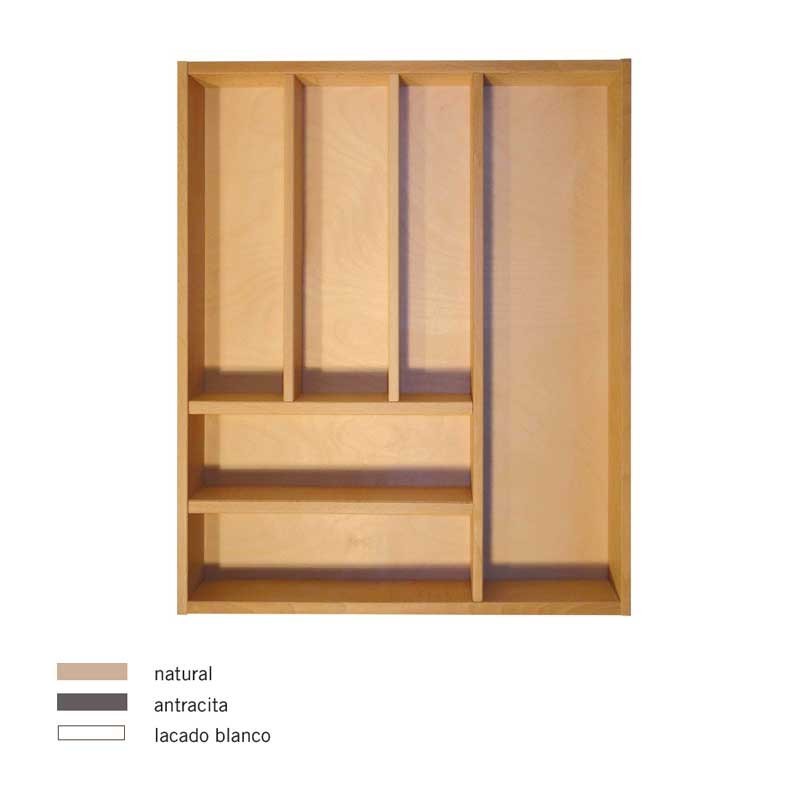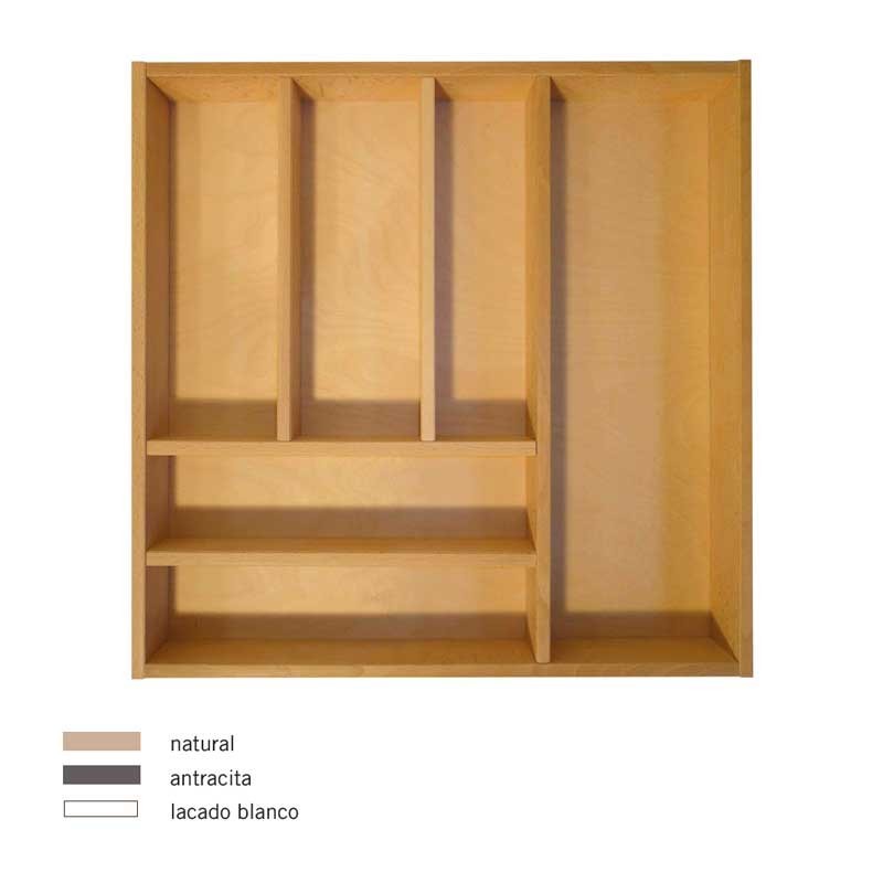Développez Porte-couverts en bois modèle Cube pour un tiroir de la cuisine. Disponible en 3 couleurs à choisir, et pour les différentes mesures de la pièce de mobilier.