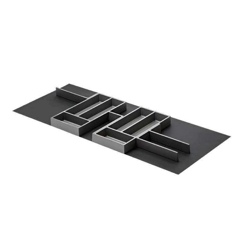 Connect est un système modulaire conçu pour créer des distributions totalement personnalisées à l’intérieur du tiroir. Tous les composants —range‑couverts et séparateurs— s’assemblent au moyen de connecteurs, permettant de configurer la forme finale selon les besoins de l’utilisateur. Son design indépendant des côtés du tiroir le rend compatible avec toute largeur, profondeur et système de coulisses.