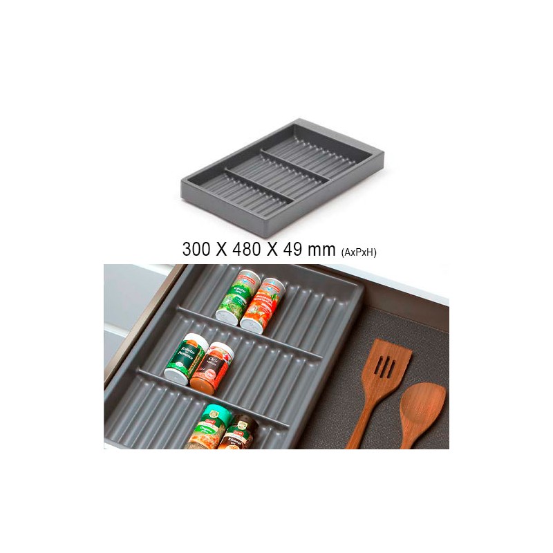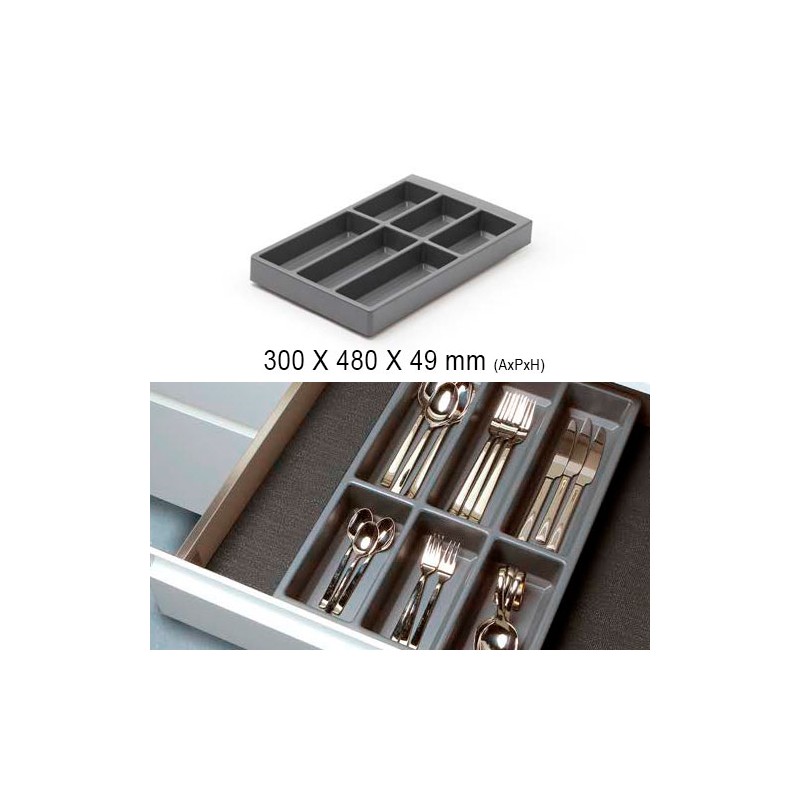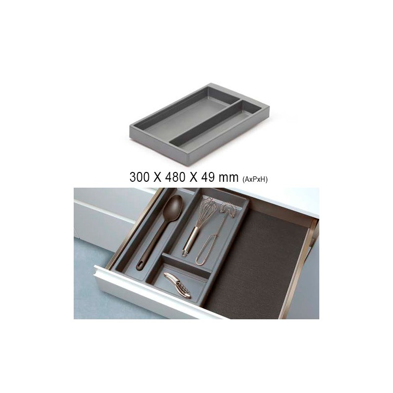 La famille se compose de 3 pièces (couverts, porte-espèces et porte-outils) de 300 mm de large fermées sur les côtés. avec 6 divisions verticales.