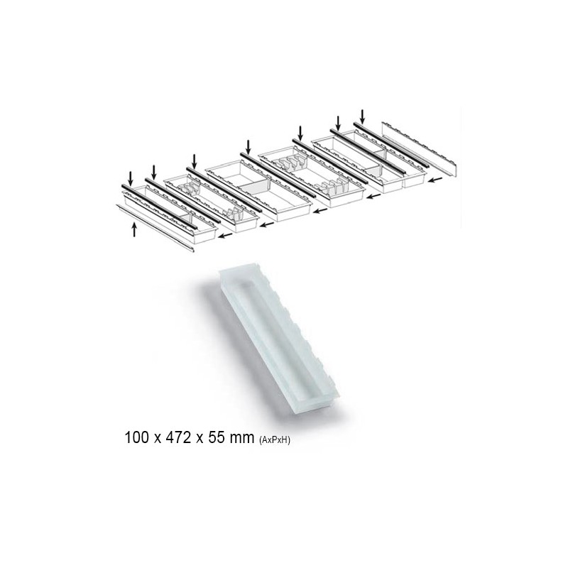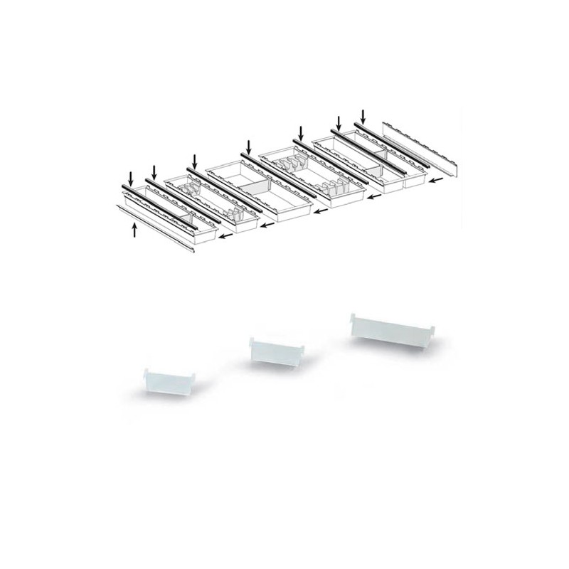 Développez Séparateurs intérieurs pour élargir le système de godets. Blanc transparent, graphite transparent et noir transparent.