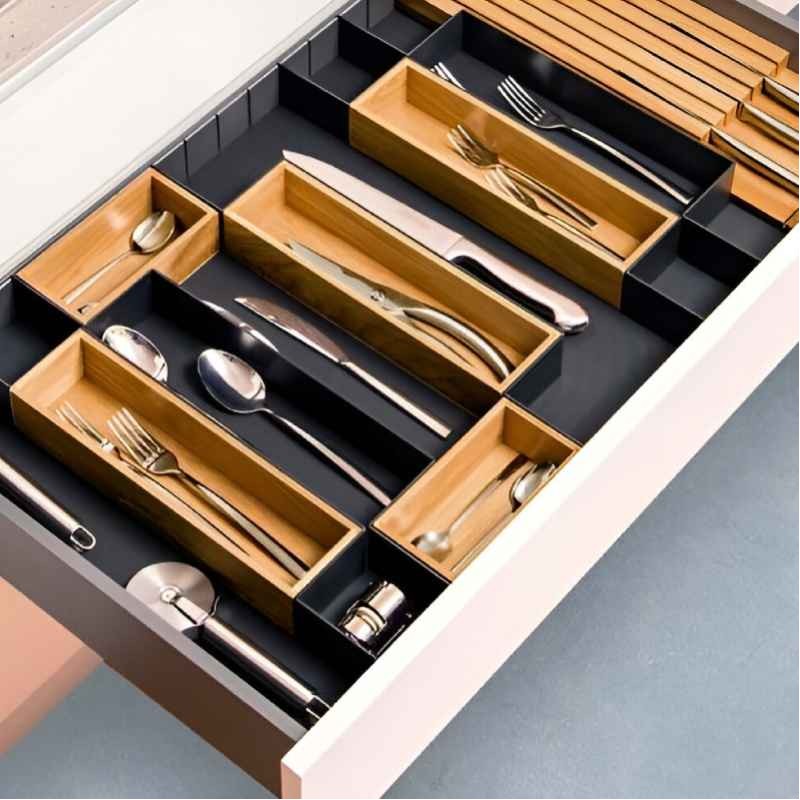 Son installation nécessite peu de temps et d’effort, il suffit de placer les profils à l’intérieur du tiroir pour créer des compartiments stables et flexibles.