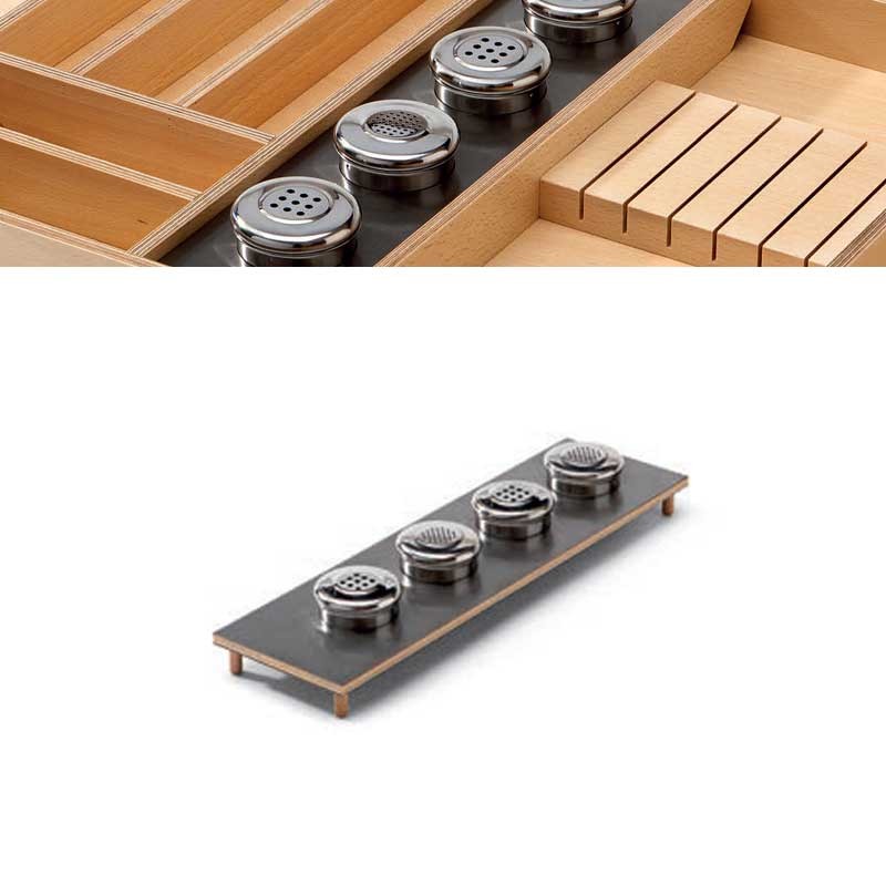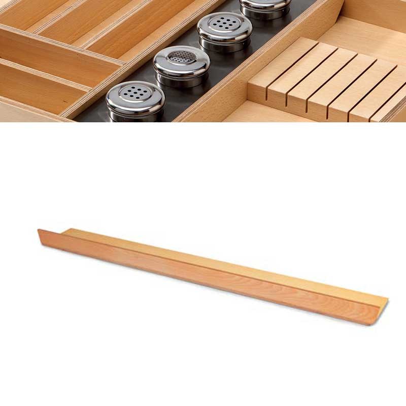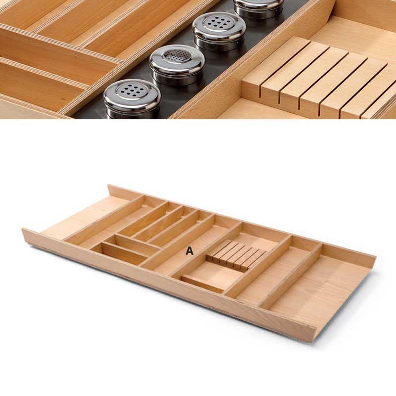 Développez L'ensemble de couverts classique et intemporel en planche phénolique plaquée hêtre sans côté est entièrement intégré dans le tiroir de 1200 mm.