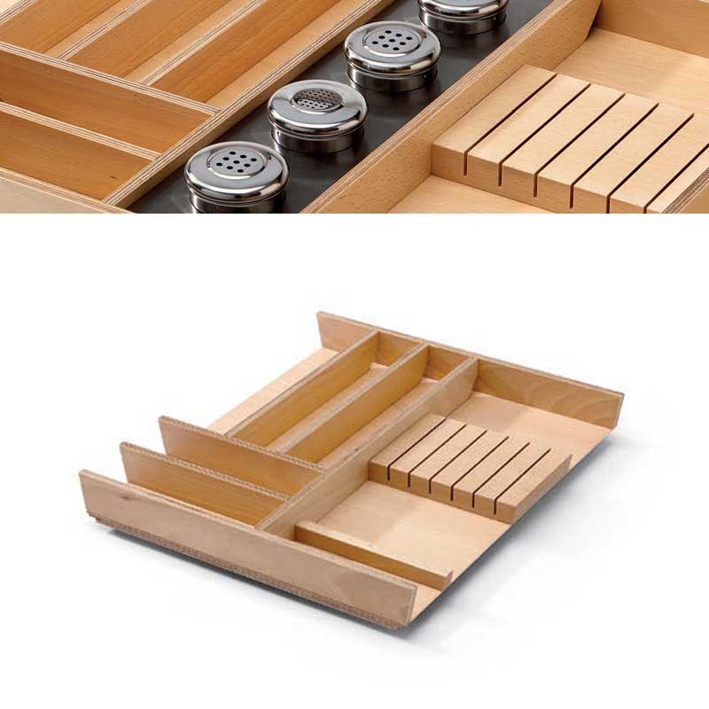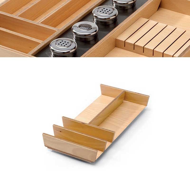 Développez Rallonge en bois en forme de L à insérer à l'arrière du porte-couverts, et utilisez ces porte-couverts dans des tiroirs de guidage jusqu'à 650 mm de profondeur.