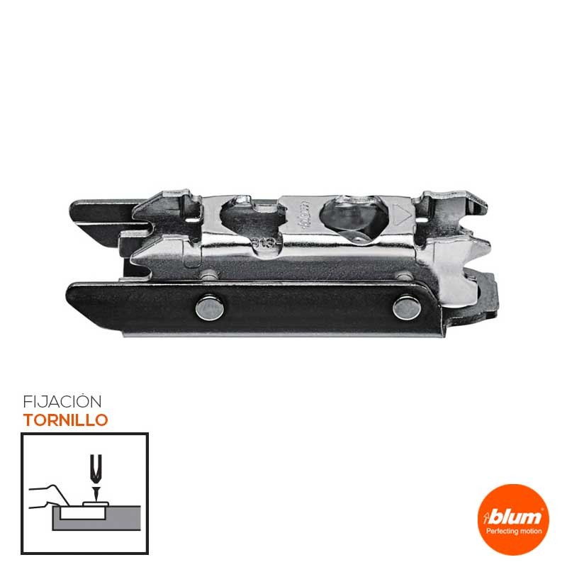 Développez Embase droite à visser avec excentrique de réglage pour le montage des charnières Blum. Finition noir onyx.