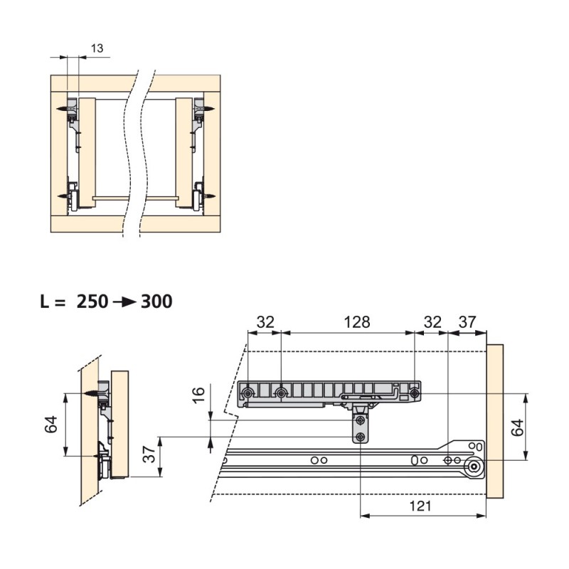 Le mécanisme de fermeture douce pour tiroirs vous aidera à éviter les chocs et améliorer le confort de votre mobilier. Cet accessoire fournit une étroite semelle guides de tiroirs baisse T30, l'obtention de cette façon, une solution efficace de haute qualité à un prix très compétitif. Il a un piston de l'amortisseur de choc pour arrêter le tiroir fermé et fournir une fermeture en douceur. Il est composé de 2 appareils pour le montage dans le module et 2 actionneurs pour le tiroir. Il est recommandé d'installer deux appareils sur chaque côté du tiroir.
