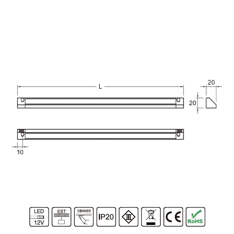 Bande LED élégante en aluminium pour installation en surface et conception à angle de 45º pour une diffusion optimale de la lumière.