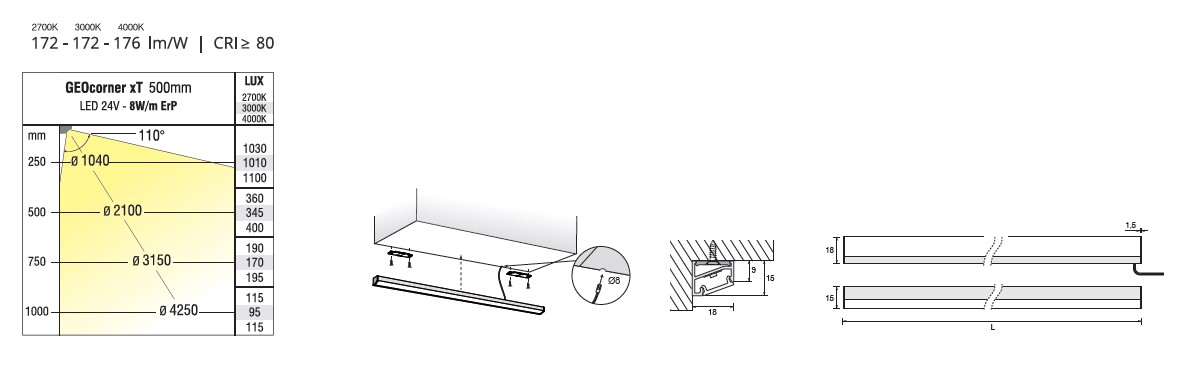 Une bande de bande de led ErP 8w / m conçue pour être installée sous des meubles de grande hauteur, composée d'un profilé en aluminium pratiquement intégré au meuble lui-même.