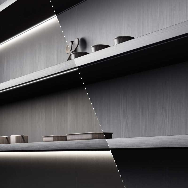 La bande ERA fumé et ERA C fumé est la même que les modèles précédents, mais avec un diffuseur anthracite, qui masque la bande lorsqu'elle est installée dans un meuble sombre. Comme les bandes précédentes, la bande se compose d'un profilé en aluminium et d'un diffuseur en polycarbonate (dans ce cas anthracite), avec une bande LED ErP de 4 mm de large et 8W/m.