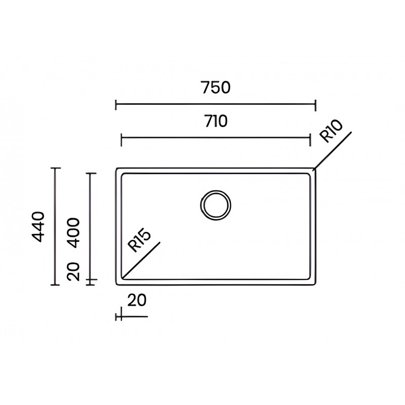Développez Évier en acier inoxydable modèle Ferrara Plus de 750 x 440 mm pour installation sous plan, avec option d’installation affleurante ou filotop.