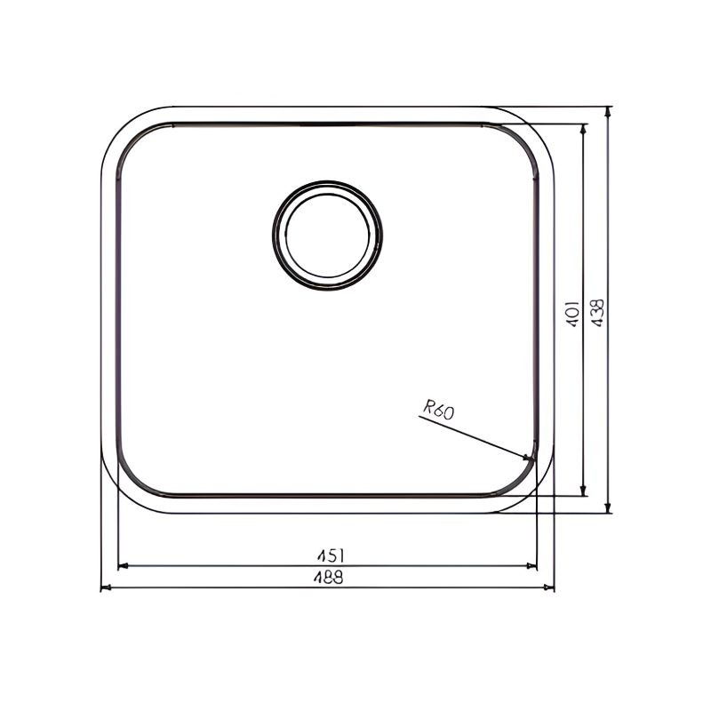Développez Évier en acier inoxydable modèle de Ferrare 488 x 438 mm pour l'installation sous plan de travail.