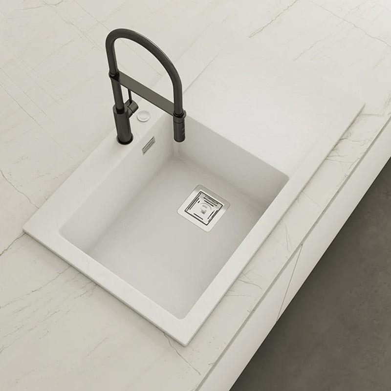 Fabriqué par Poalgi dans son matériau en masse Hekla®, cet évier en granit offre une vaste et confortable zone de travail résistante aux facteurs externes. De plus, sa pose sur plan de travail offre deux hauteurs différentes pour s'adapter au style de votre cuisine.