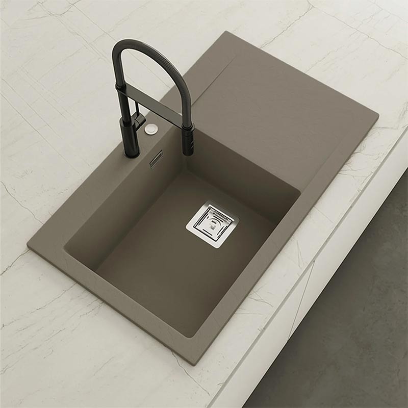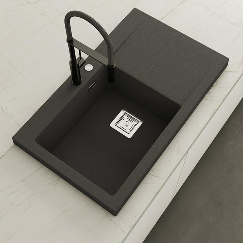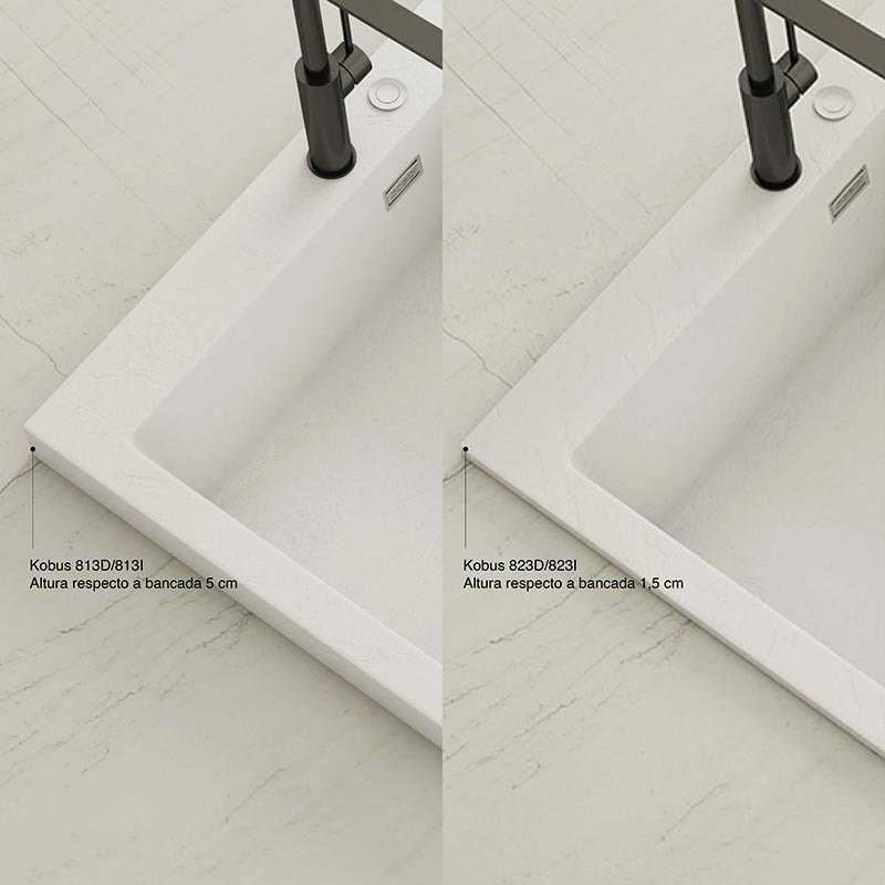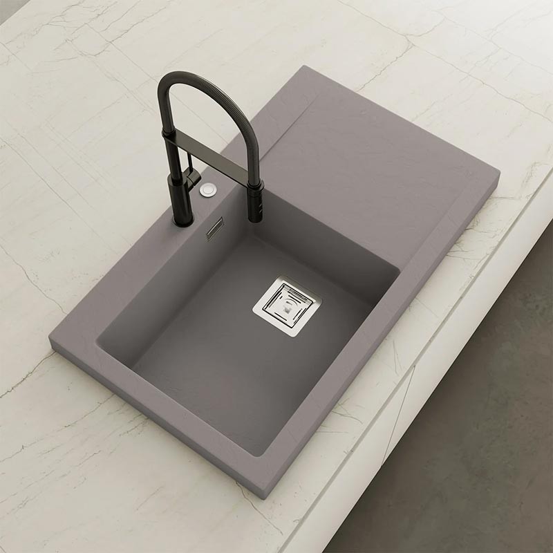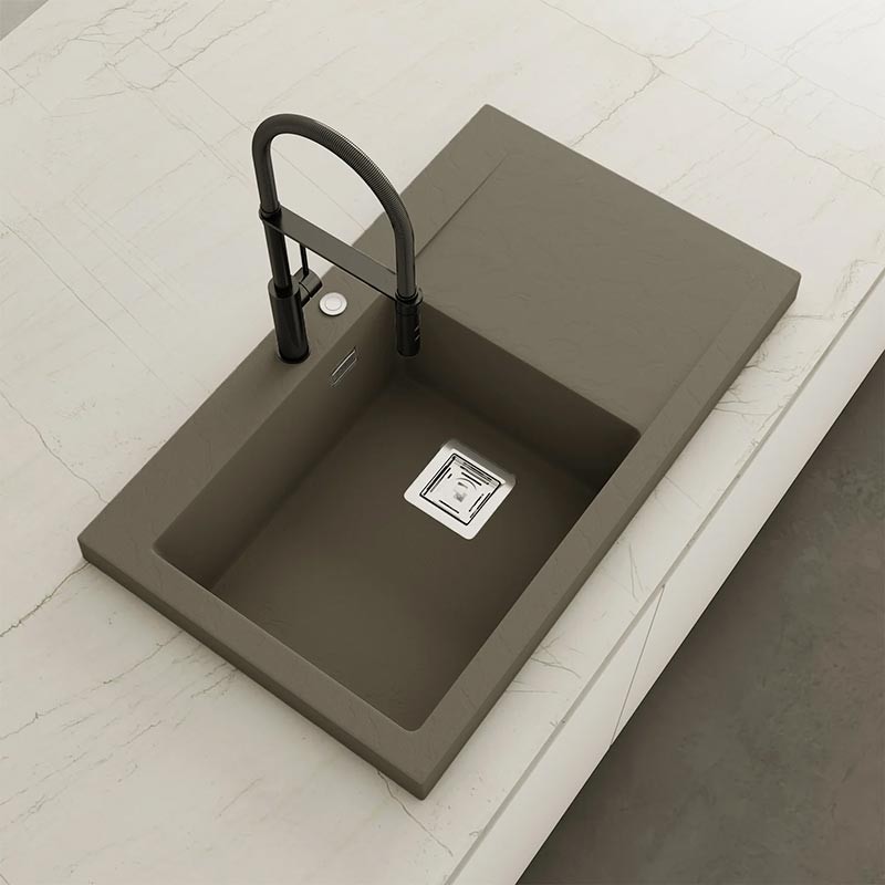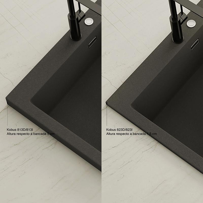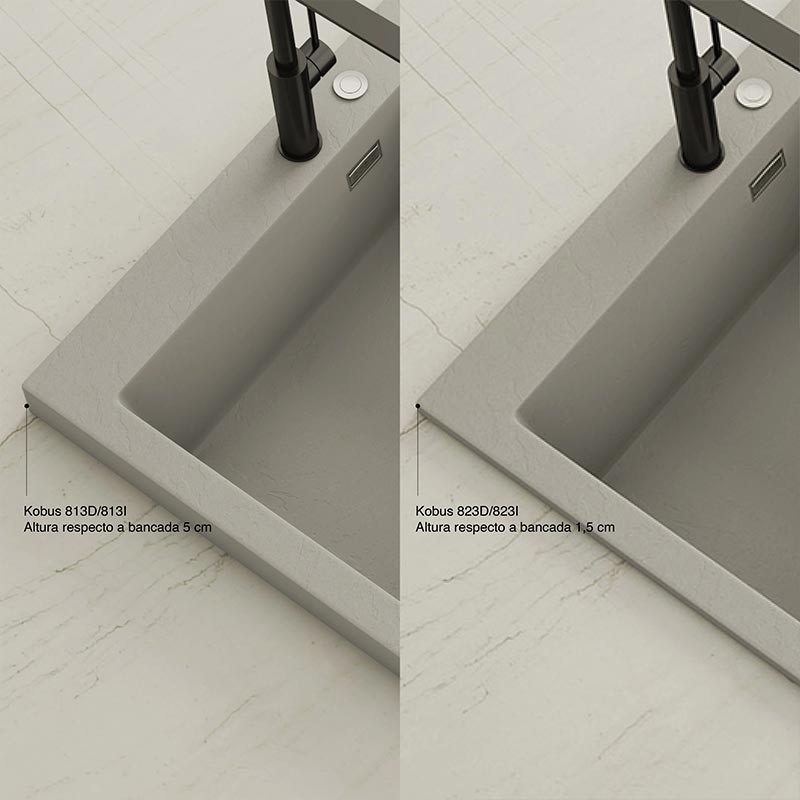 Développez Évier en granit Hekla® modèle Kobus avec texture ardoise mate pour montage sur plan de travail dans des meubles d'au moins 60 cm de large.