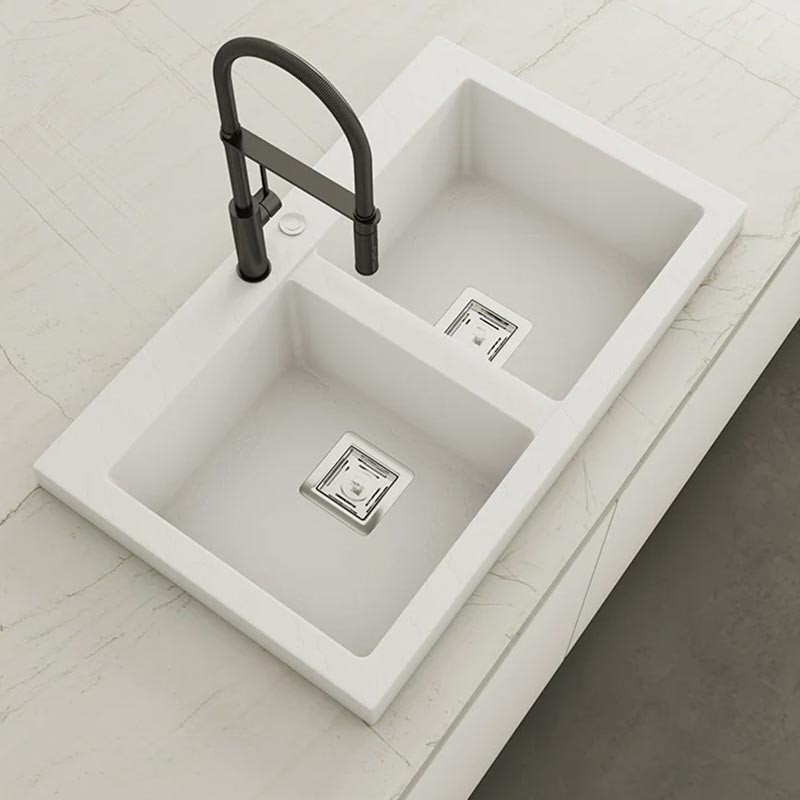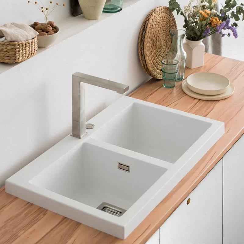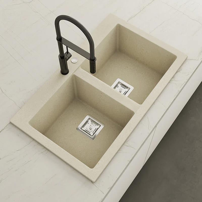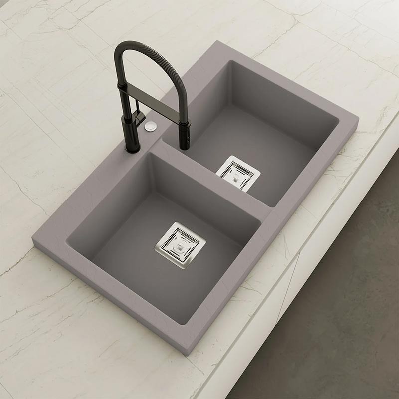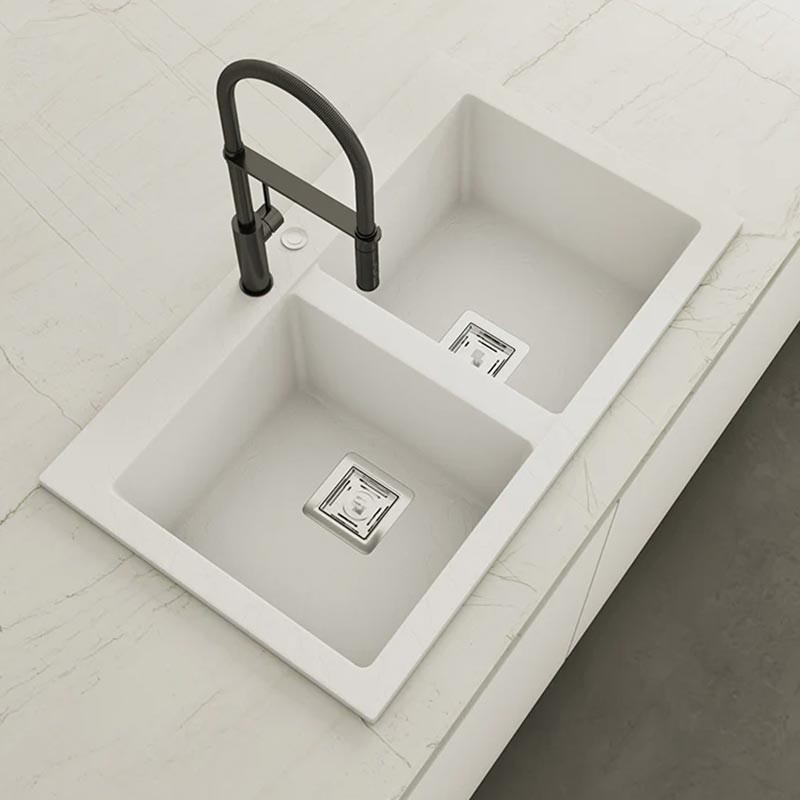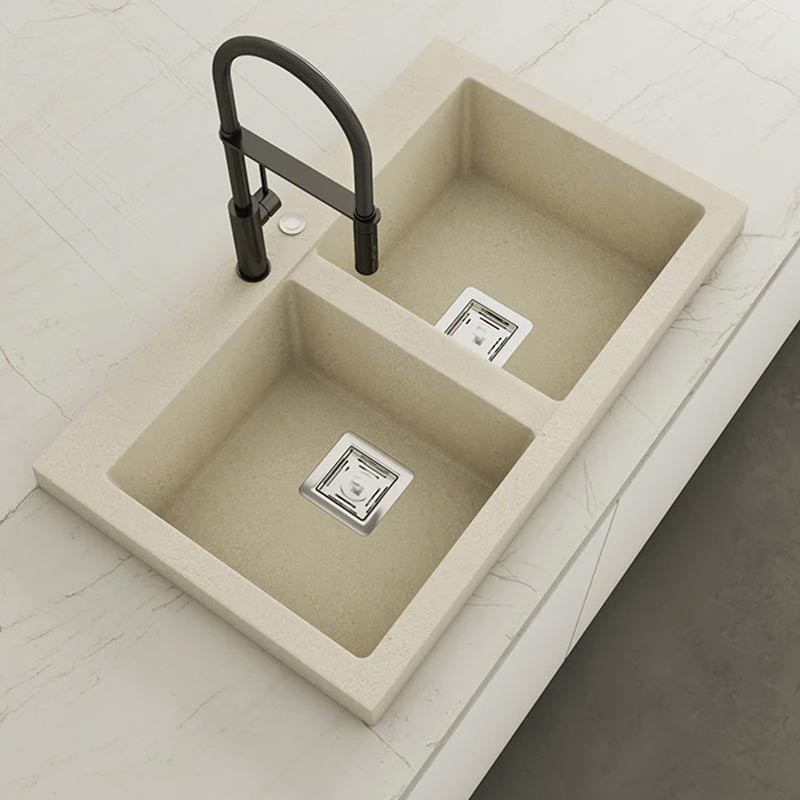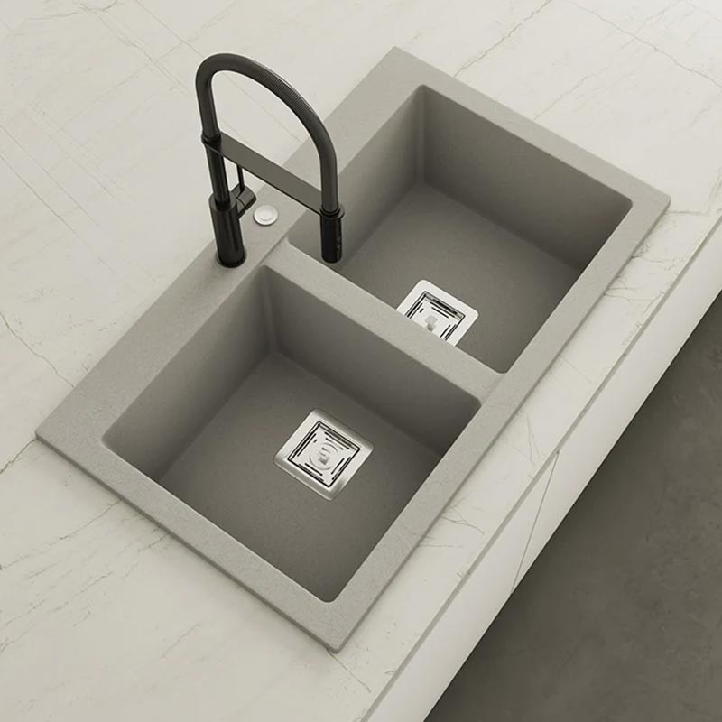 Fabriqué par Poalgi avec son matériau en masse Hekla®, cet évier en granit offre une vaste et confortable zone de travail résistante aux facteurs externes. De plus, son installation sur plan de travail offre deux hauteurs différentes pour s'adapter au style de votre cuisine.