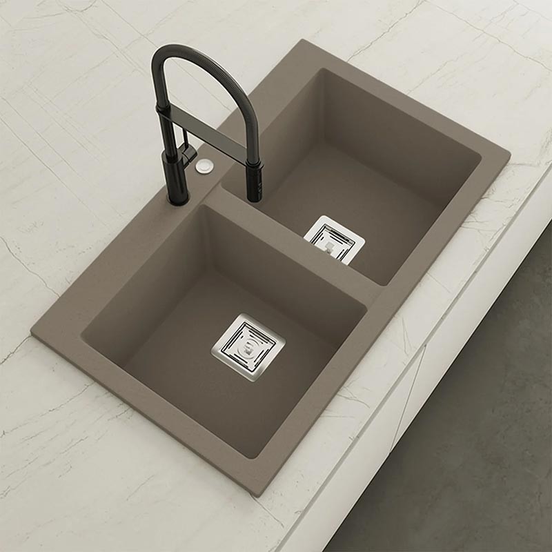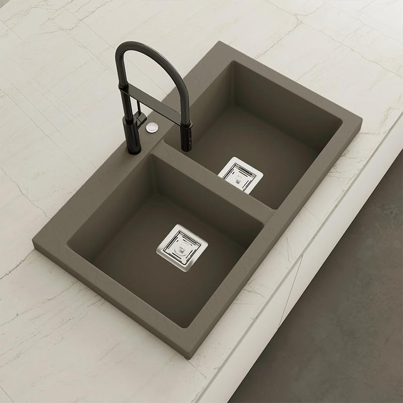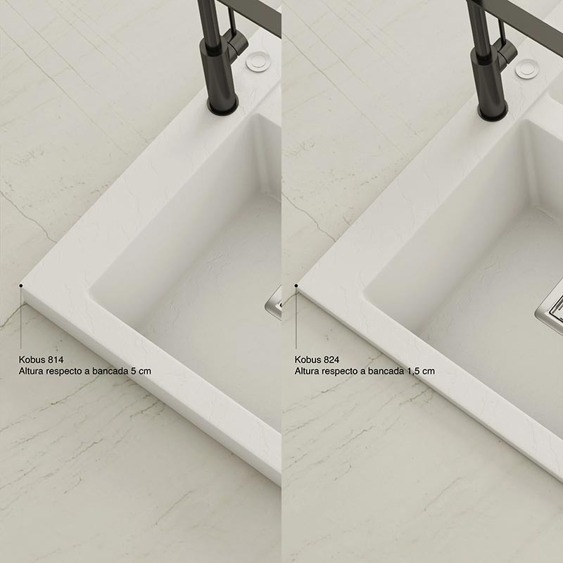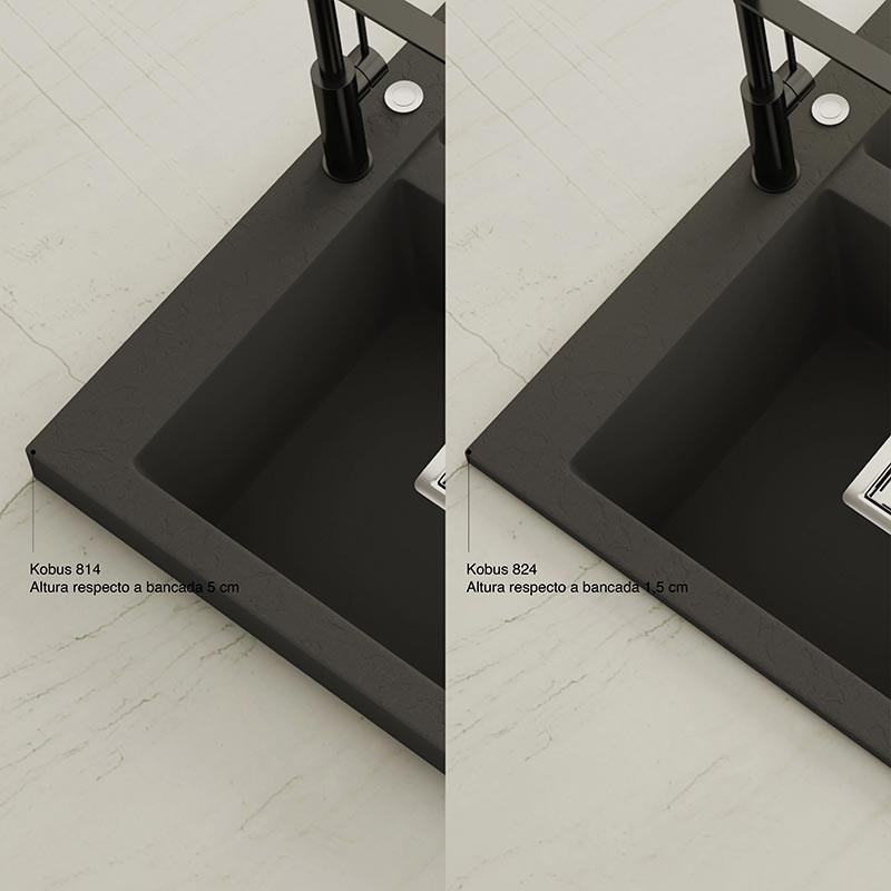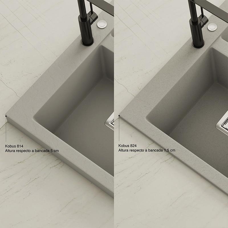 Développez Évier en granit Hekla® modèle Kobus avec texture ardoise mate pour montage sur plan de travail dans des meubles d'au moins 90 cm de large.