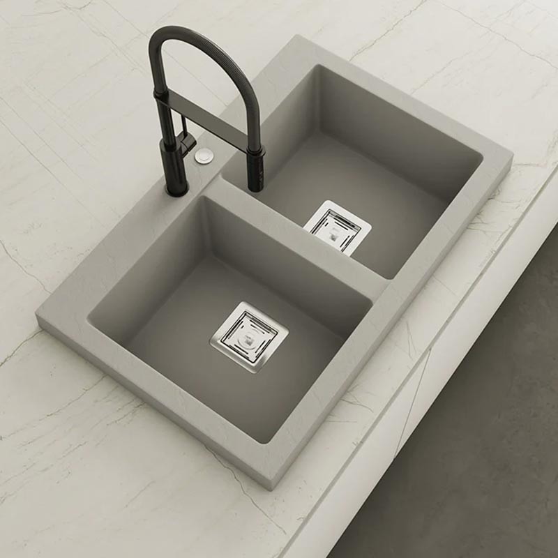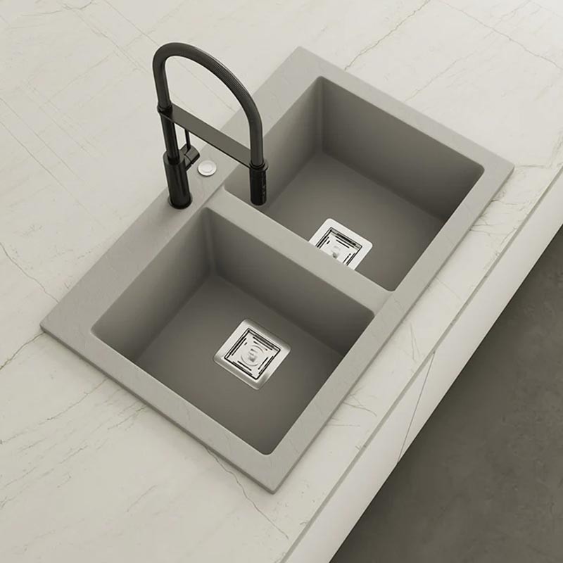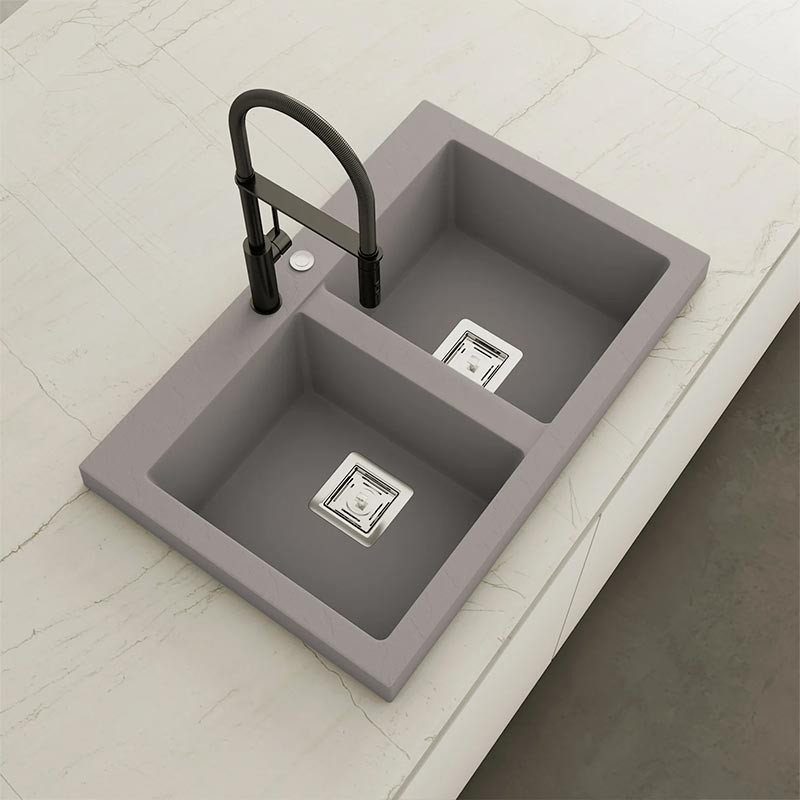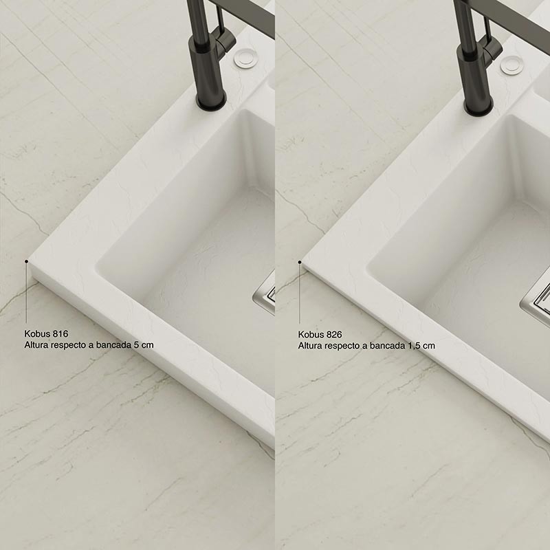 Fabriqué par Poalgi dans son matériau en masse Hekla®, cet évier en granit offre une large et confortable zone de travail résistante aux facteurs externes. De plus, son installation sur plan de travail propose deux hauteurs différentes pour s'adapter au style de votre cuisine.