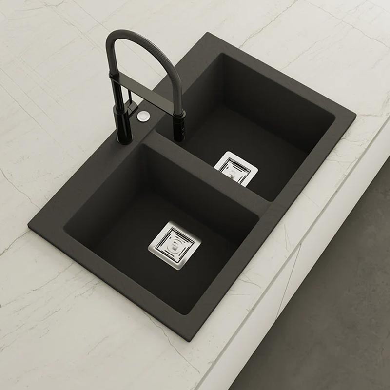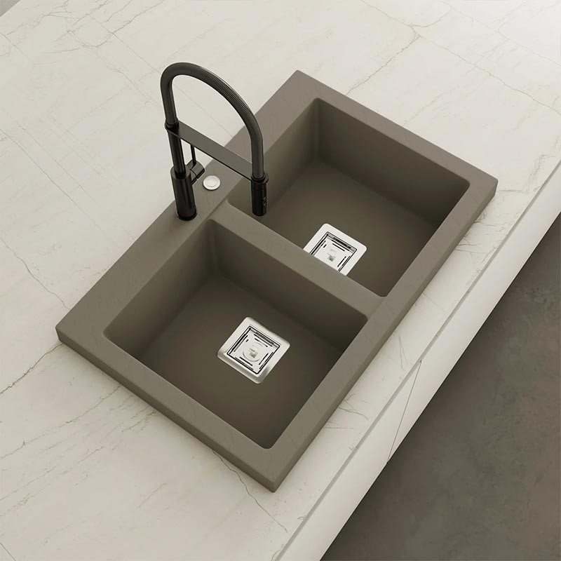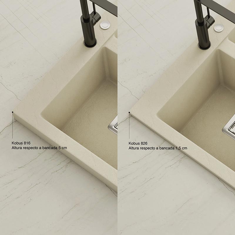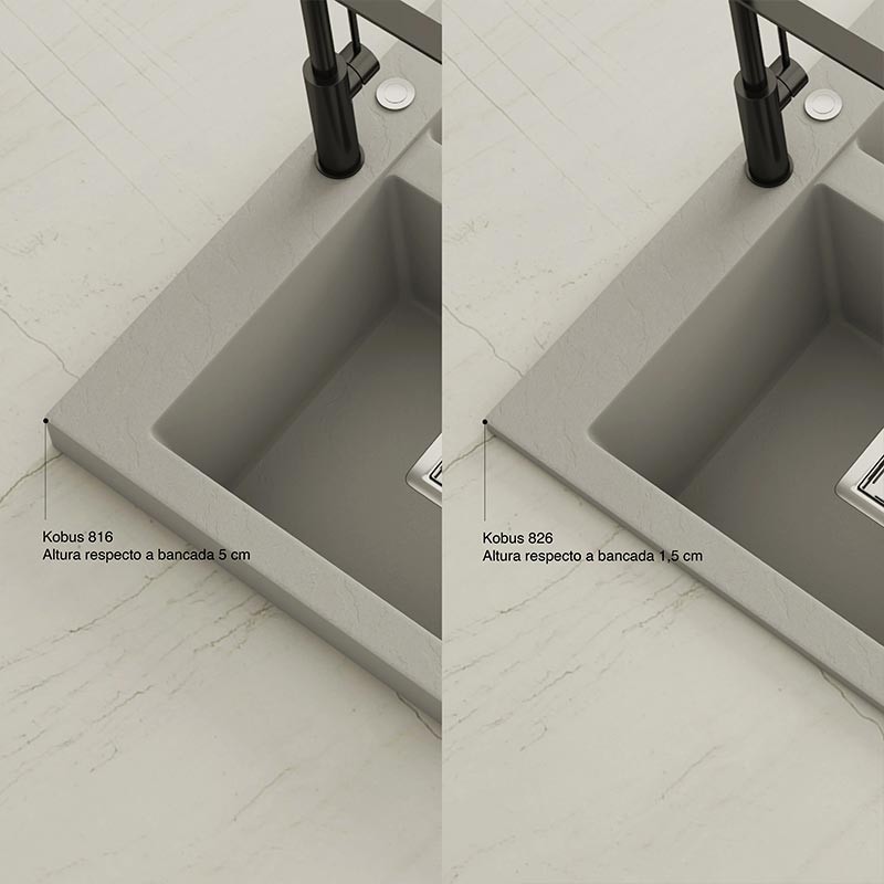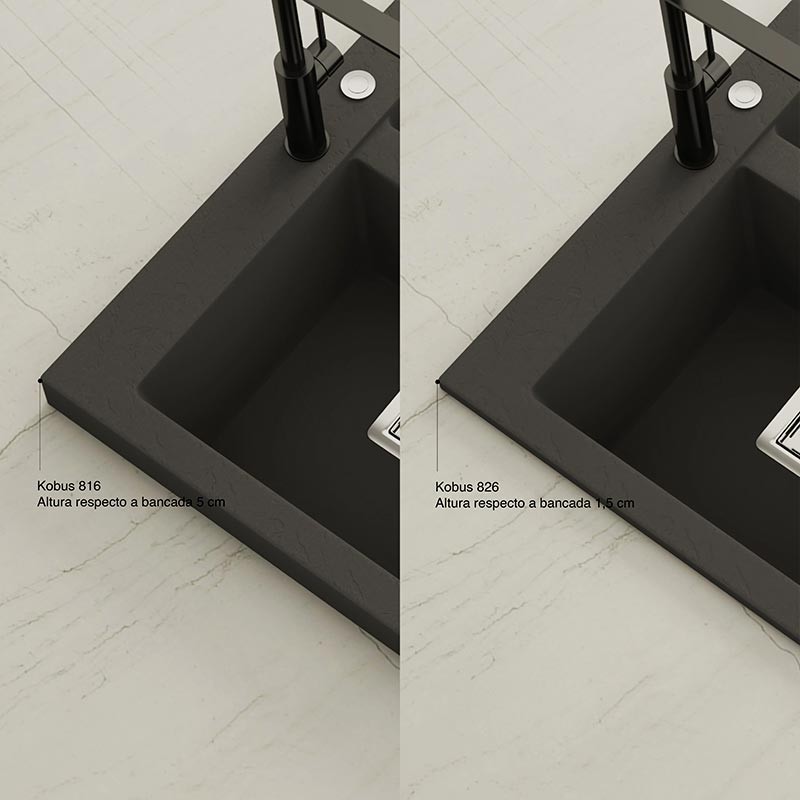Développez Évier en granit Hekla® modèle Kobus avec texture ardoise mate pour montage sur plan de travail dans des meubles d'au moins 80 cm de large.