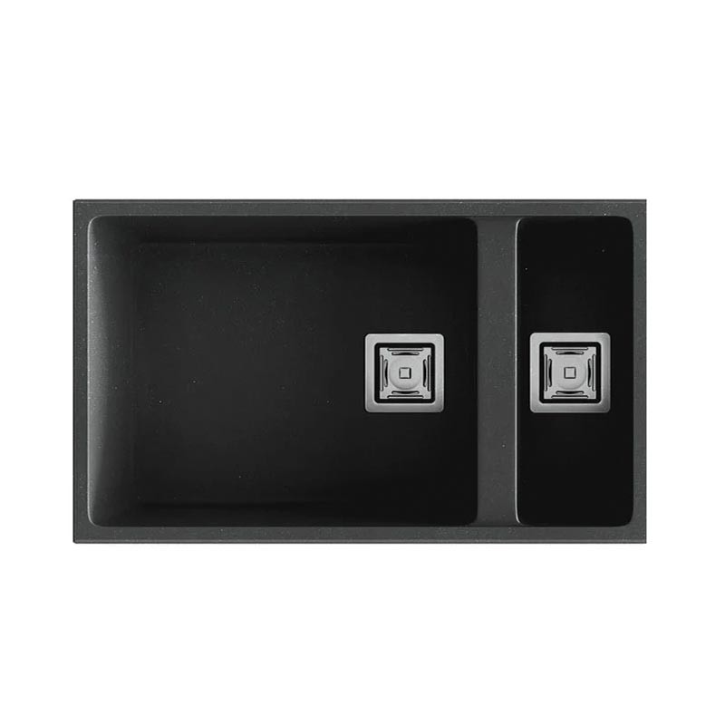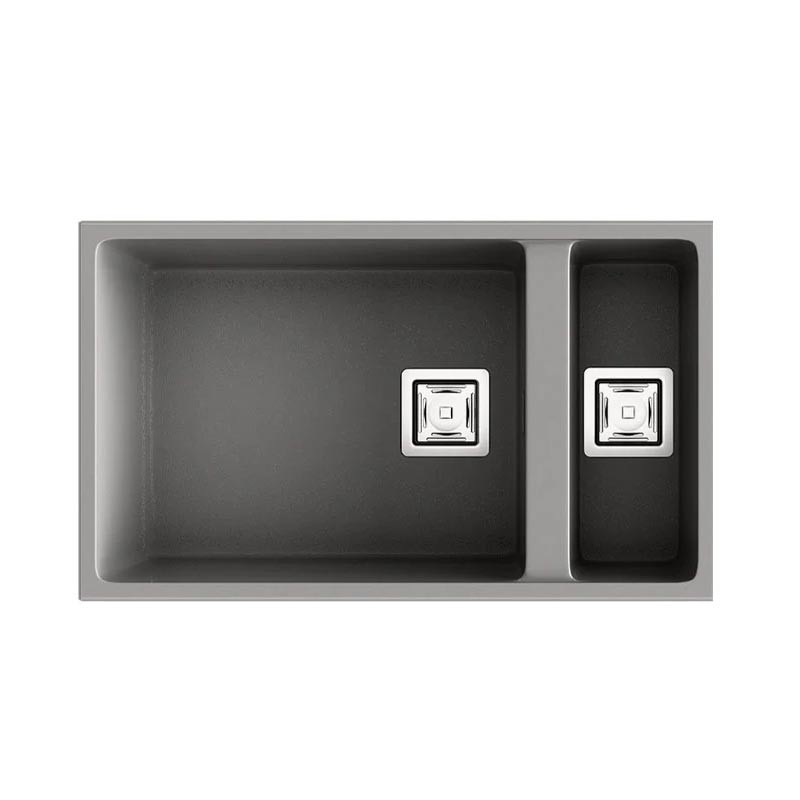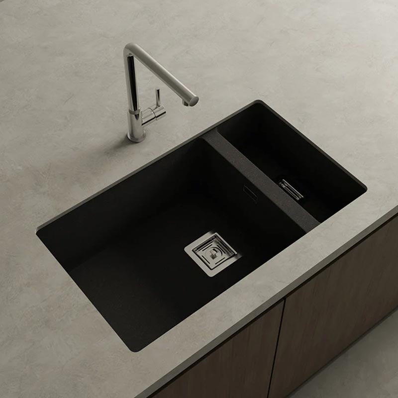 Développez Évier en granit Hekla® modèle Zie 70 avec un bac plus un égouttoir à légumes finition mate pour montage sous plan ou sur plan dans des meubles de 80 cm minimum.