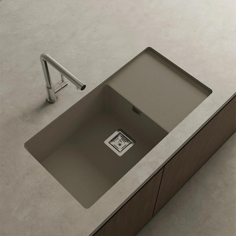 Fabriqué par Poalgi dans son matériau en masse Hekla®, cet évier en granit offre polyvalence et une zone de travail résistante aux facteurs externes.