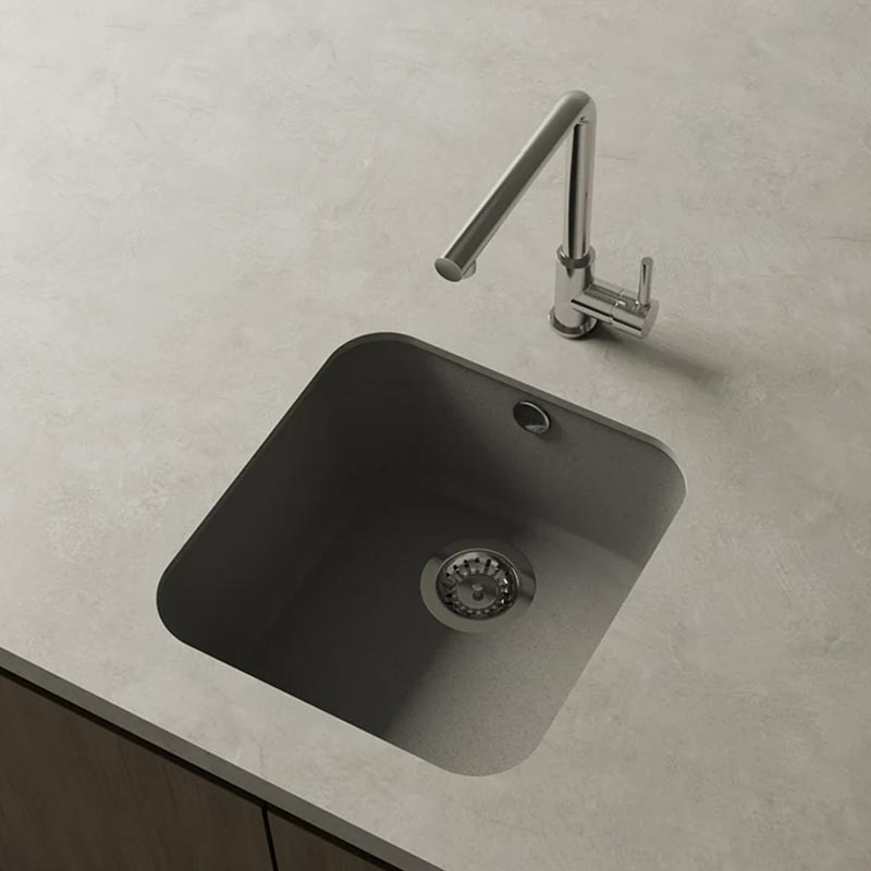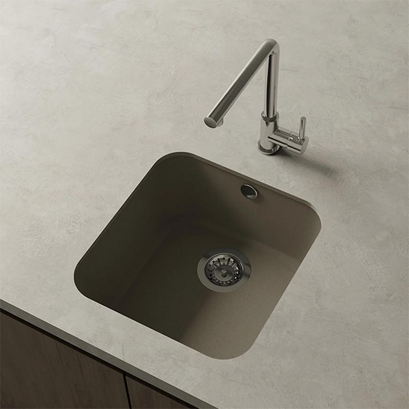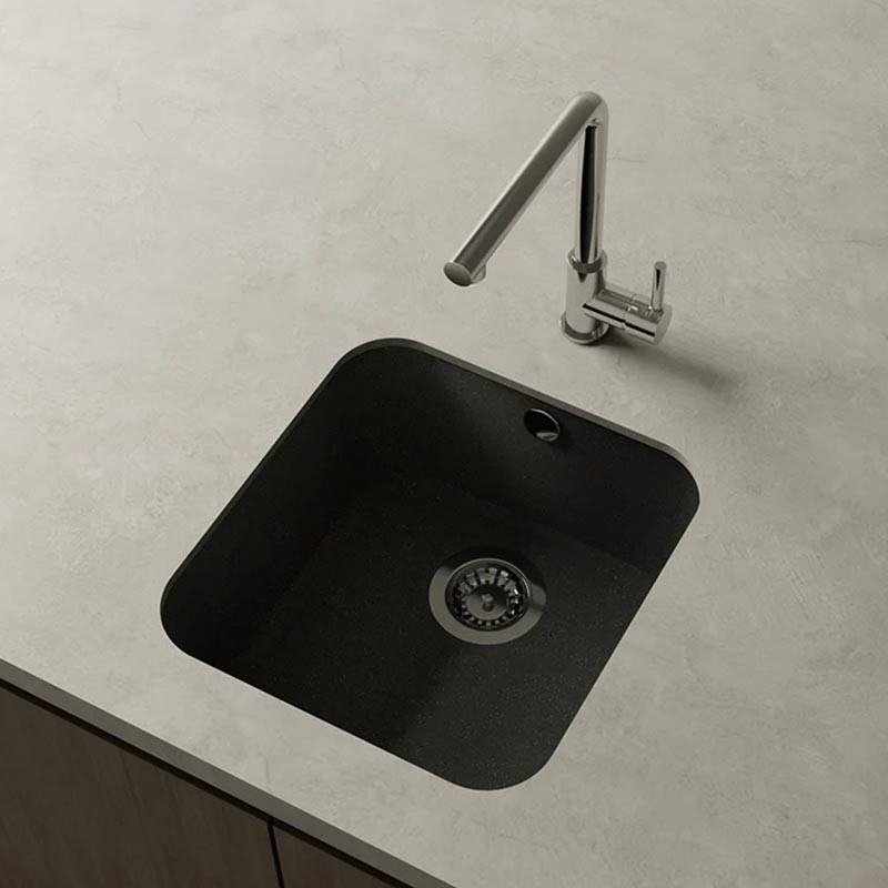 Développez Évier en granit Hekla® modèle Gandia finition mate pour montage sous plan ou sur plan dans des meubles d'au moins 50 cm de large.