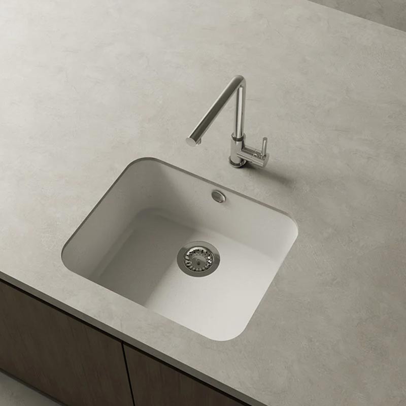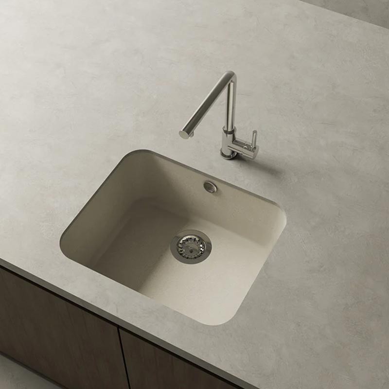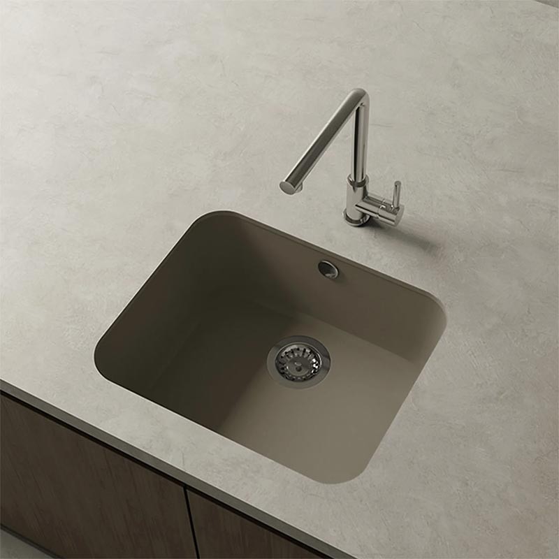 Développez Évier en granit Hekla® modèle Gandia finition mate pour montage sous plan de travail ou sur plan de travail dans des meubles d'au moins 60 cm de largeur.