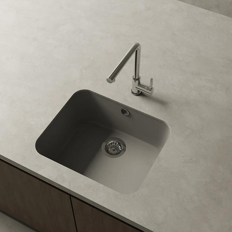 Un évier polyvalent que vous pouvez placer sous ou sur plan, ainsi que choisir parmi sa variété de couleurs mates harmonieuses inspirées des écosystèmes volcaniques de l'Islande.
