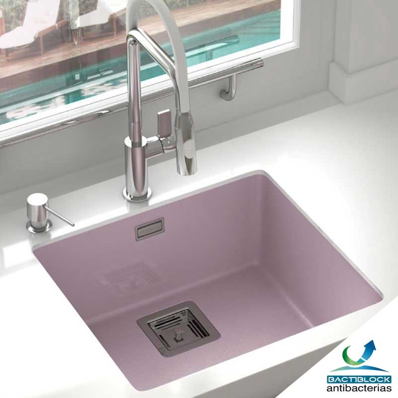 En plus de tous les éviers synthétiques Poalgi conduire un agent antibactérien, antimicrobien additif adapté à une grande variété de matériaux polymères. La technologie brevetée par NBM est basé sur de l'argile fonctionnalisés avec de l'argent, de se comporter comme une source naturelle très efficace comme agent antimicrobien. Cet additif inhibe la croissance des bactéries, champignons et levures, ainsi, être un outil très efficace contre les odeurs et les taches.