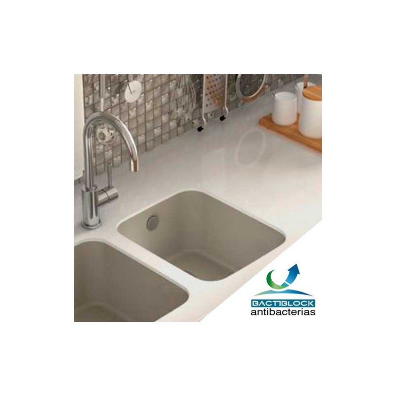 En plus de tous les éviers synthétiques Poalgi conduire un agent antibactérien, antimicrobien additif adapté à une grande variété de matériaux polymères. La technologie brevetée par NBM est basé sur de l'argile fonctionnalisés avec de l'argent, de se comporter comme une source naturelle très efficace comme agent antimicrobien. Cet additif inhibe la croissance des bactéries, champignons et levures, ainsi, être un outil très efficace contre les odeurs et les taches.