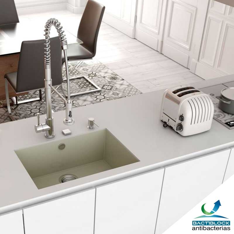 En plus de tous les éviers synthétiques Poalgi conduire un agent antibactérien, antimicrobien additif adapté à une grande variété de matériaux polymères. La technologie brevetée par NBM est basé sur de l'argile fonctionnalisés avec de l'argent, de se comporter comme une source naturelle très efficace comme agent antimicrobien. Cet additif inhibe la croissance des bactéries, champignons et levures, ainsi, être un outil très efficace contre les odeurs et les taches.