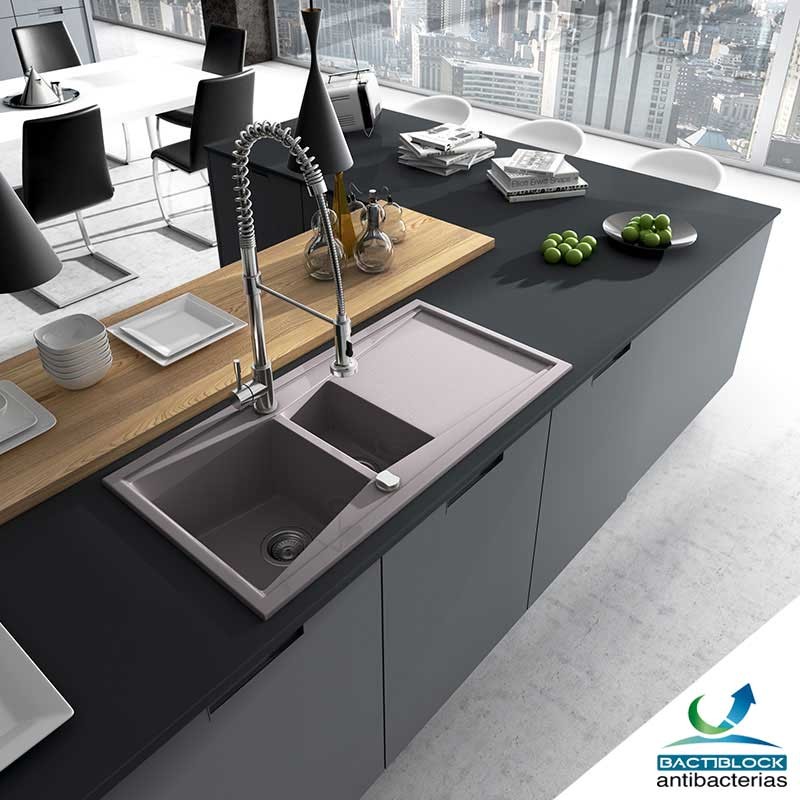 En plus de tous les éviers synthétiques Poalgi conduire un agent antibactérien, antimicrobien additif adapté à une grande variété de matériaux polymères. La technologie brevetée par NBM est basé sur de l'argile fonctionnalisés avec de l'argent, de se comporter comme une source naturelle très efficace comme agent antimicrobien. Cet additif inhibe la croissance des bactéries, champignons et levures, ainsi, être un outil très efficace contre les odeurs et les taches.