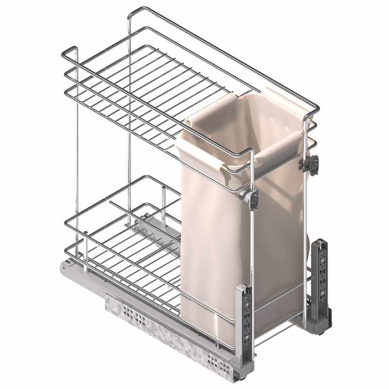 Pull-out pour les meubles de cuisine pour le stockage de bouteilles, boîtes de conserve ou d'autres produits. En outre, il porte un construit-dans le sac en tissu pour stocker le pain.