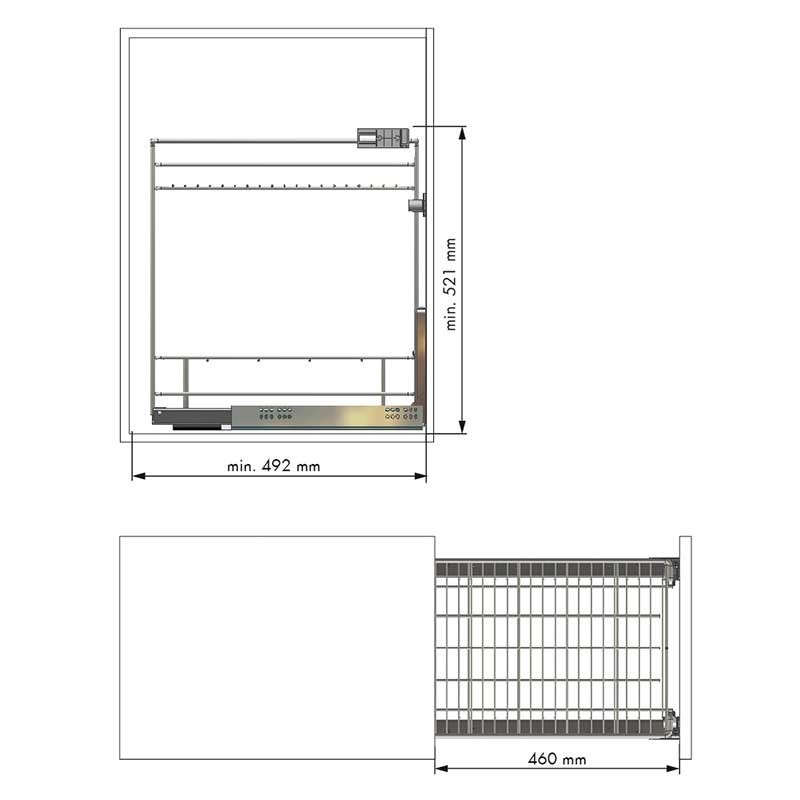 Pull-out pour les meubles de cuisine pour le stockage des bouteilles, des canettes ou des produits similaires. La partie basse se subdivise encore pour éviter que les bouteilles de frapper les uns les autres.