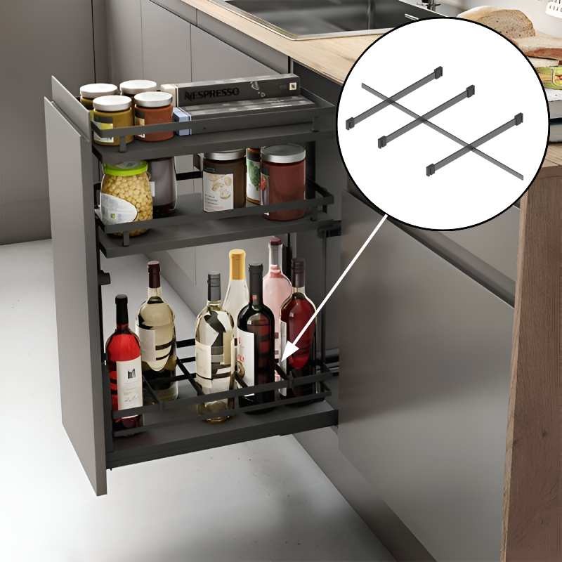Module amovible casier à vin pour meuble de cuisine. Idéal pour le stockage des bouteilles, des canettes ou d'articles similaires. Le kit comprend des éléments intercalaires pour empêcher les bouteilles de frapper les uns les autres.