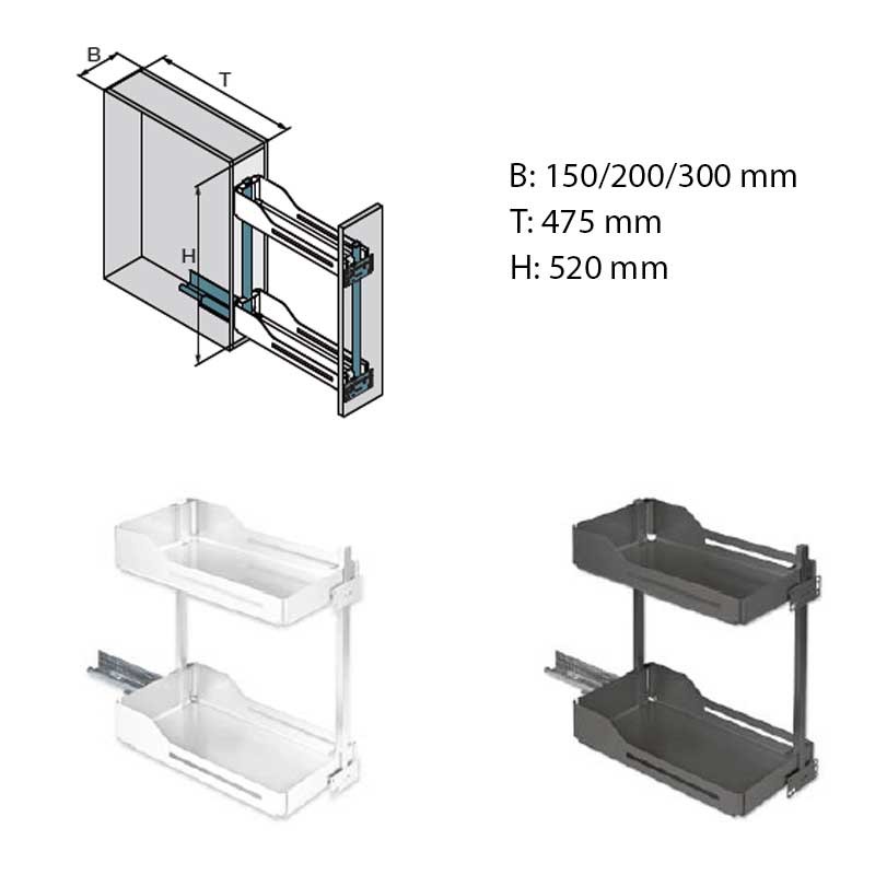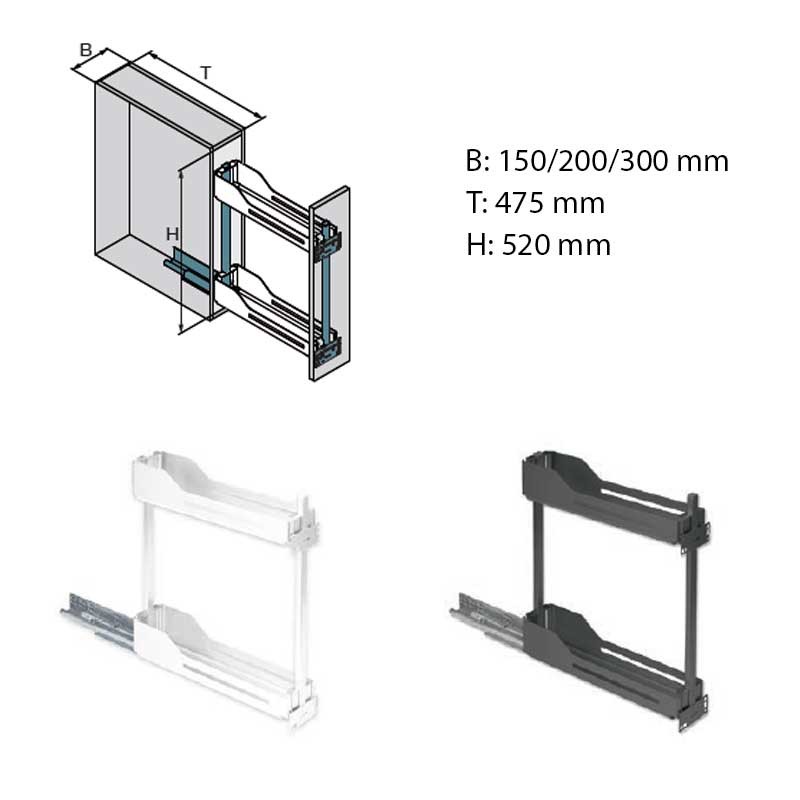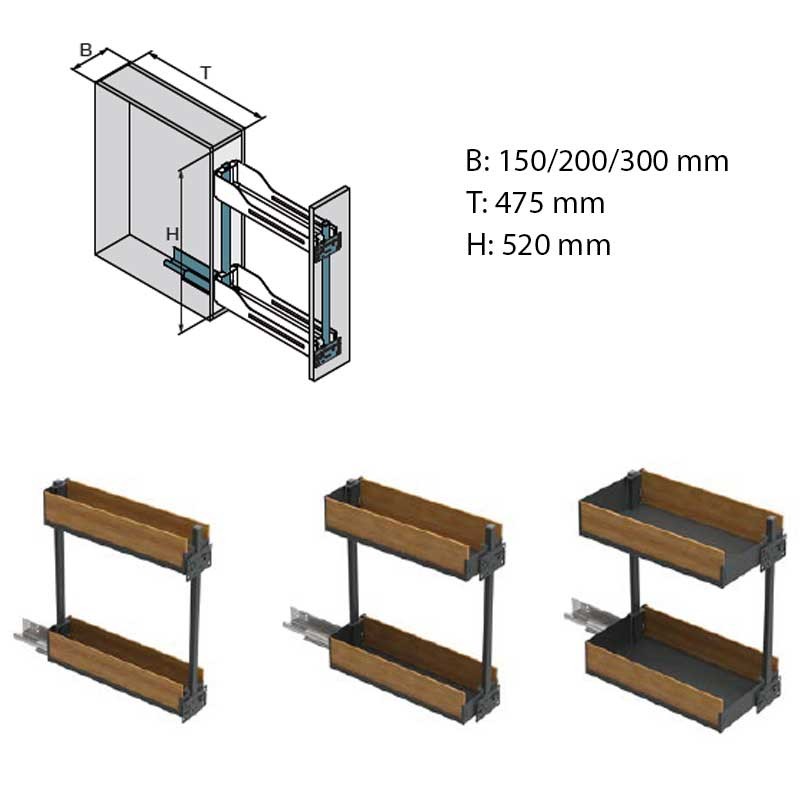 Développez Porte-bouteilles SNELLO LIBELL et finition FIORO spécial pour meubles à base étroite (150-300 mm). Idéal pour ranger les épices, nettoyer les ustensiles ou les bouteilles